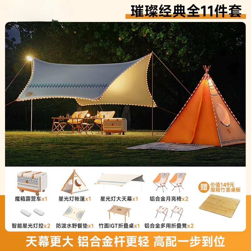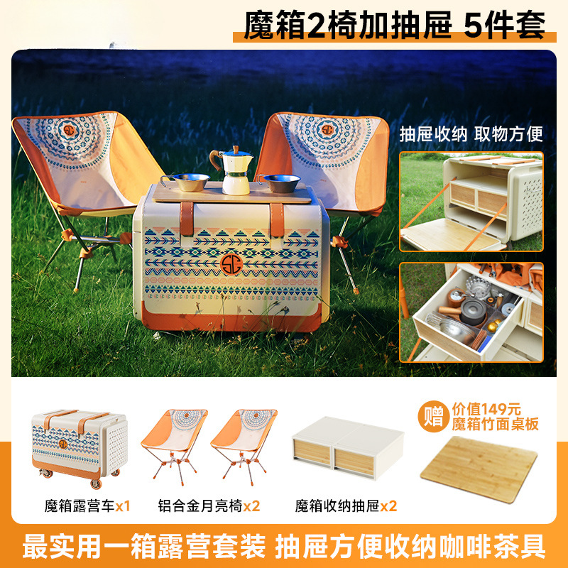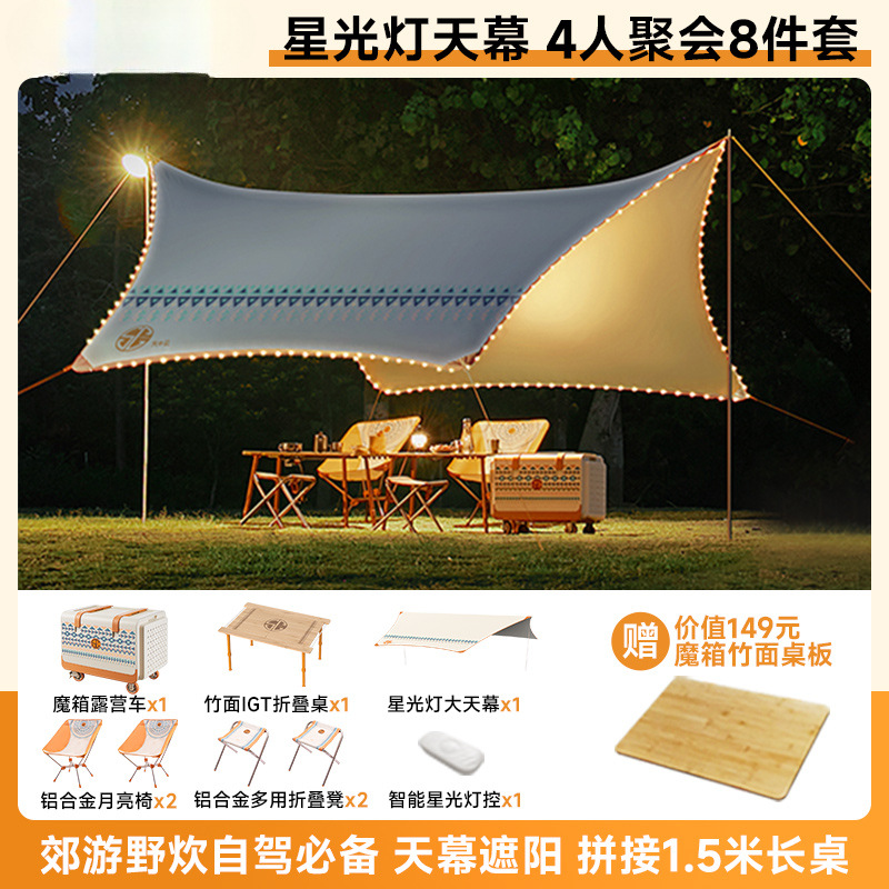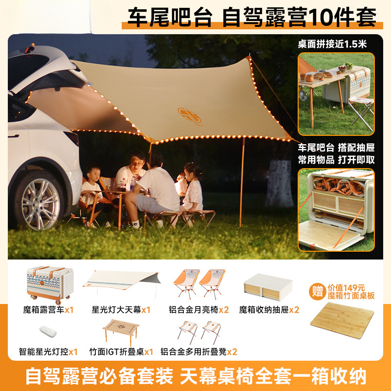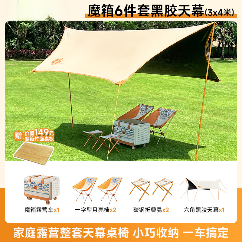 캐노피 텐트 캠핑 장비 풀 세트 매직 박스 캠핑카 투인원 테이블과 의자 6종 세트 일체형스토어 가기