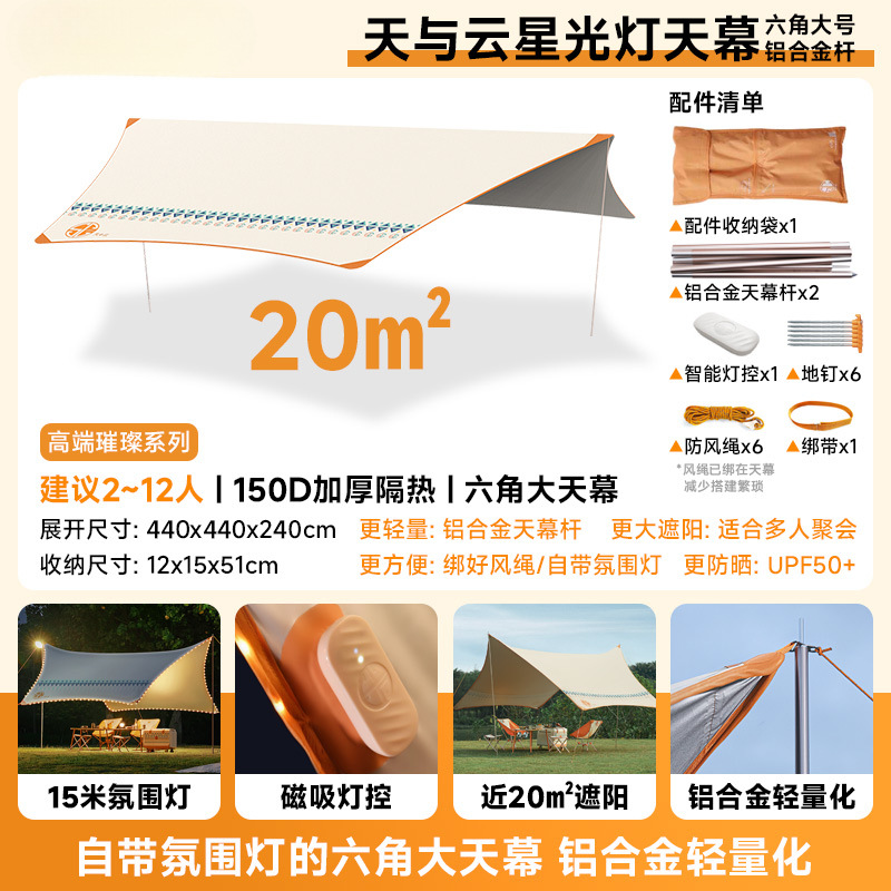 • 대형 캐노피: 별빛 + 알루미늄 기둥(20 ㎡ 6~12명)