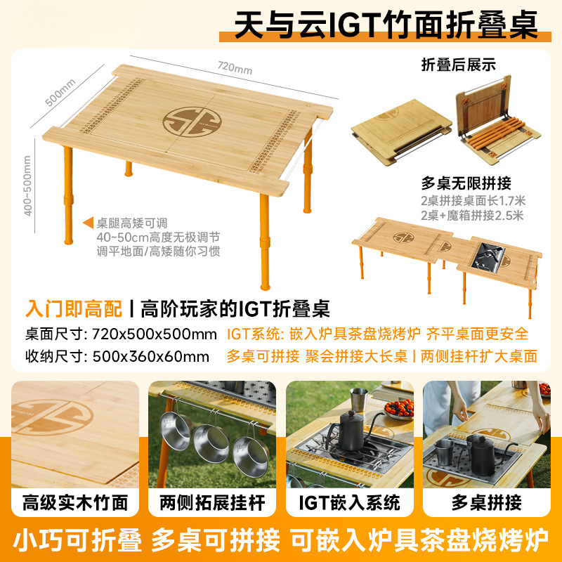 • IGT 테이블: 천연 대나무 표면 + 접이식 + 2단 IGT
