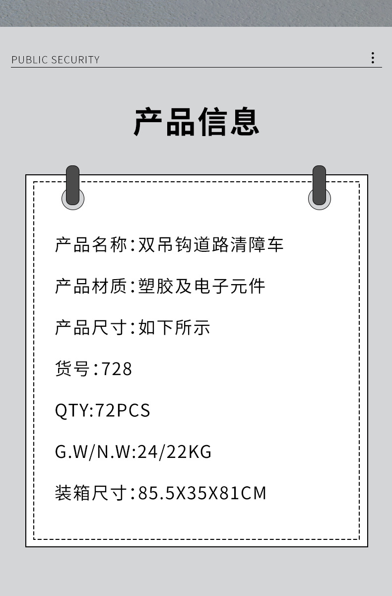 • 8603B 더블 후크 도로 청소 차량(합금 모델)