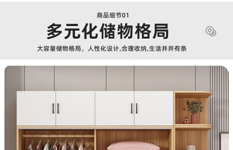 • 업그레이드된 길이 200cm*높이 220 옷장 + 상단 캐비닛/