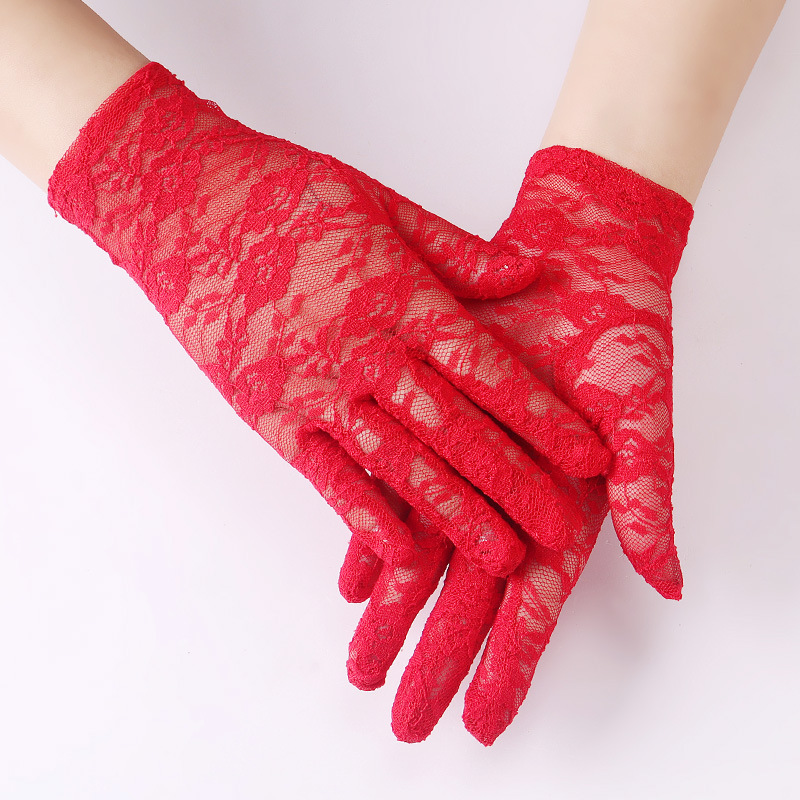 여성을위한 여름 얇은 태양 보호 레이스 장갑 짧은 검정 흰색 큰 빨간색 웨딩 드레스 신부 결혼식 장갑