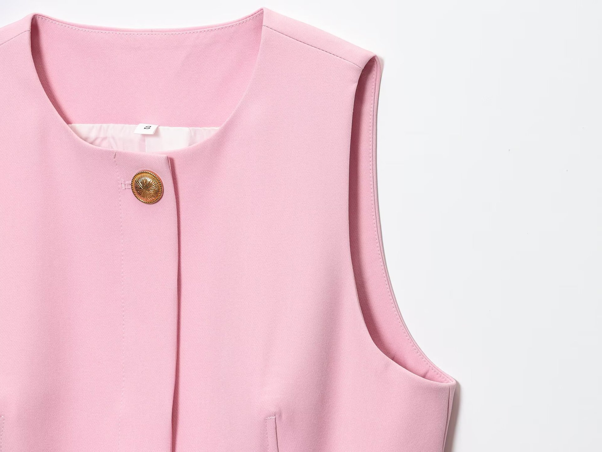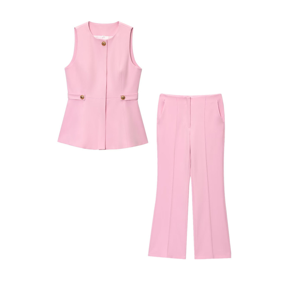 국경 간 공급 2025 새로운 여름 여성 의류 슬림하고 다재다능한 짧은 스커트 스타일 밑단 조끼 플레어 바지 정장