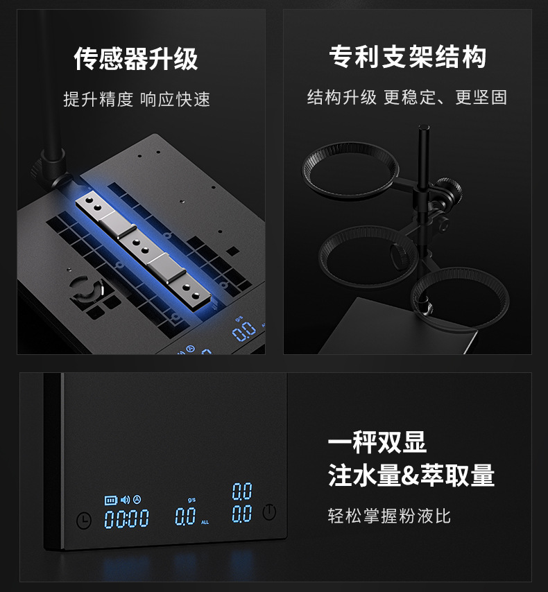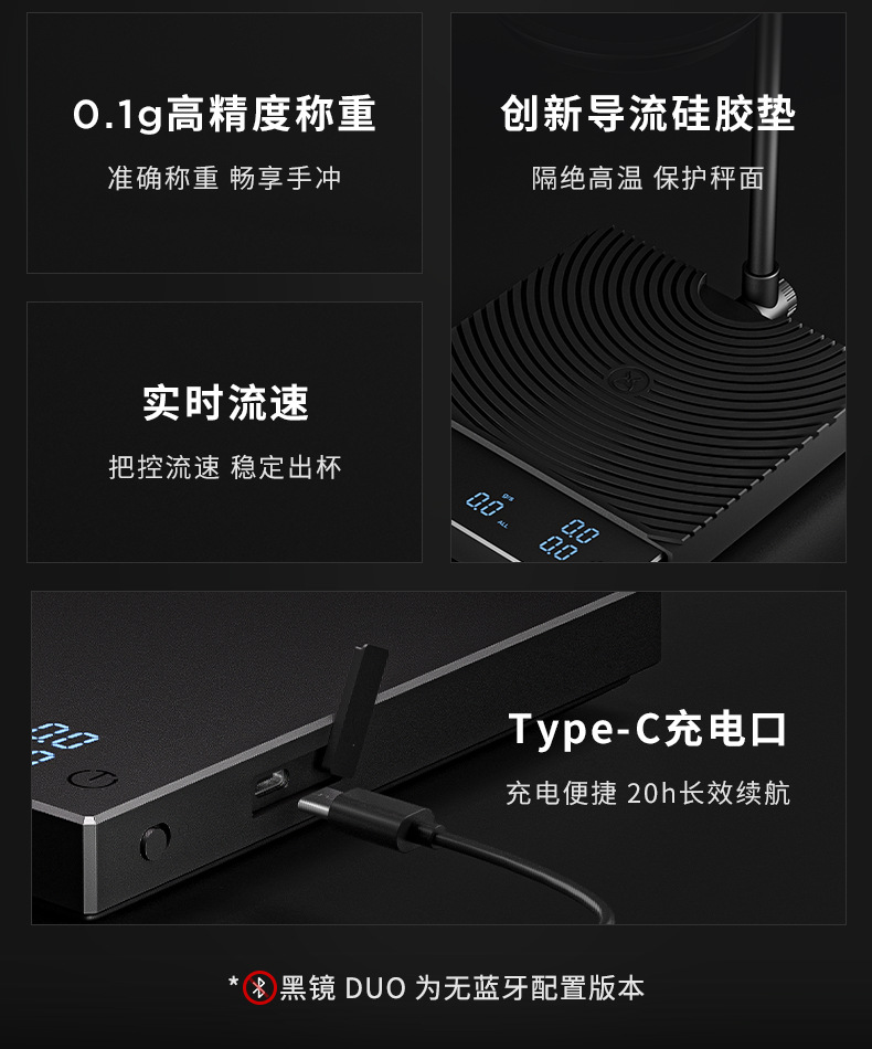 Taimo Black Mirror DUO 스마트 커피 전자 저울 이중 계량 계량 타이밍 고정밀 핸드 브루 커피 스케일