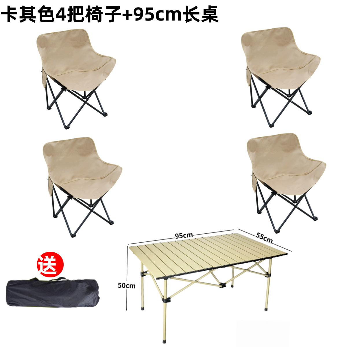 • [편안한 스타일] 카키색 의자 4개 + 95cn 길이의 접이식 테이블