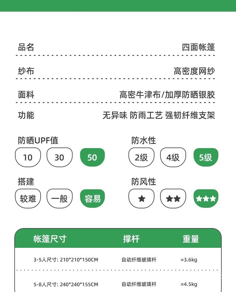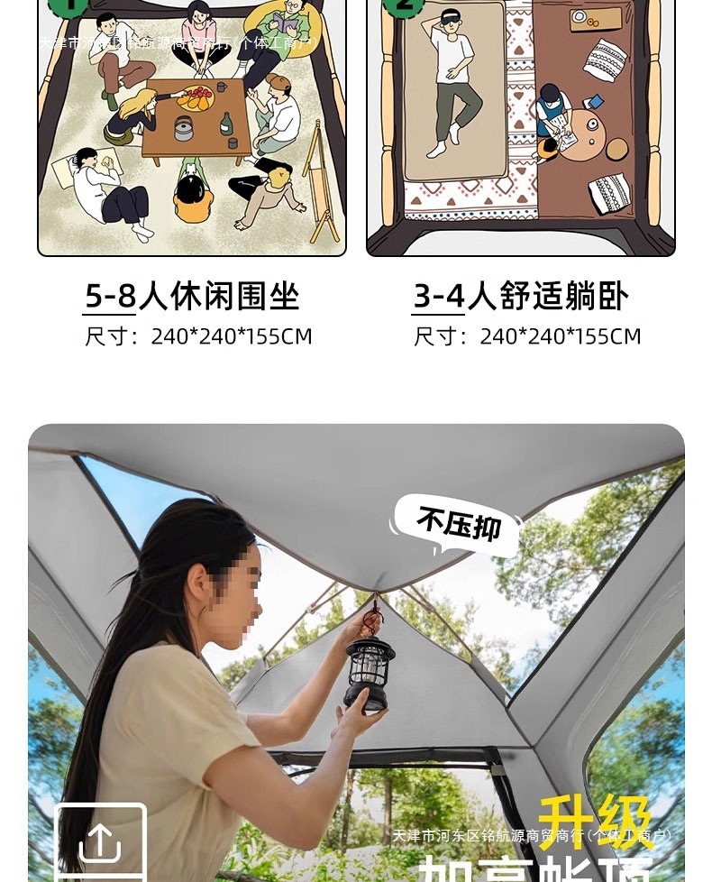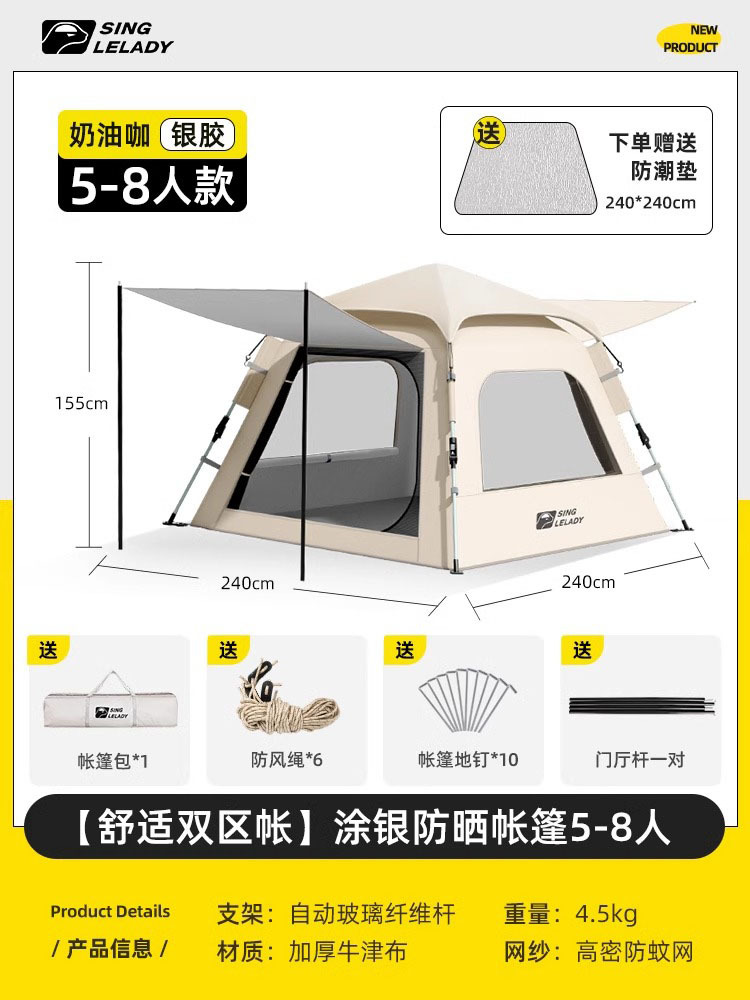 • 5~8명 [이중 구역 텐트] 문 2개, 창문 2개(방습 매트 포함)