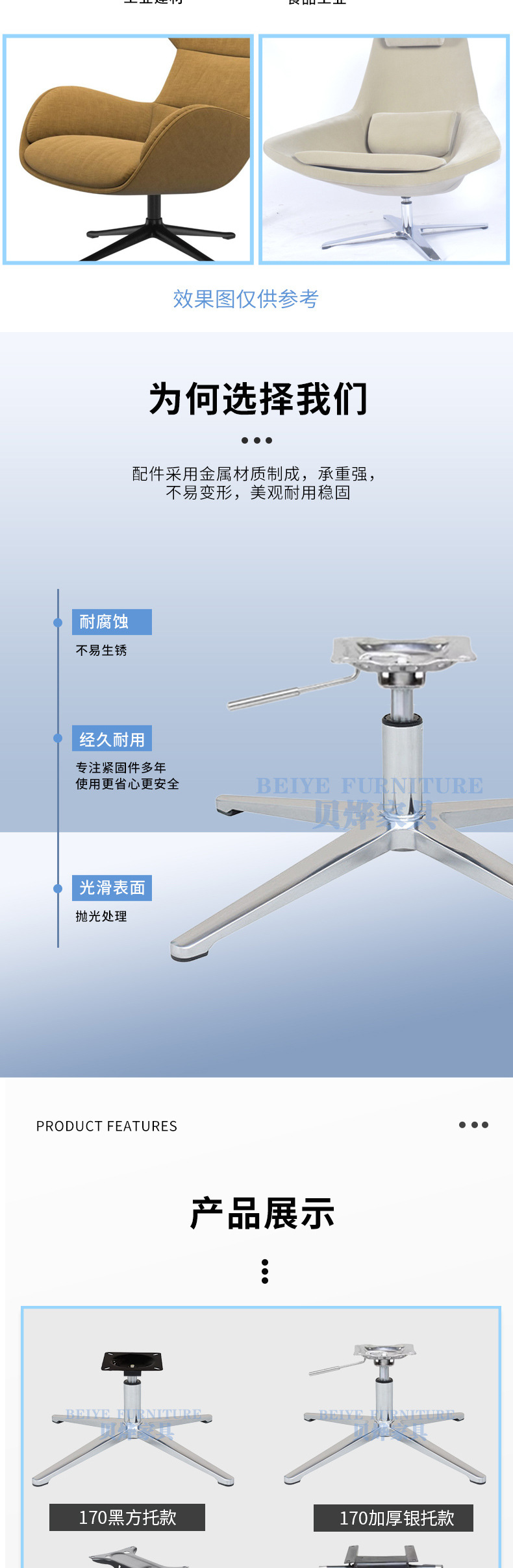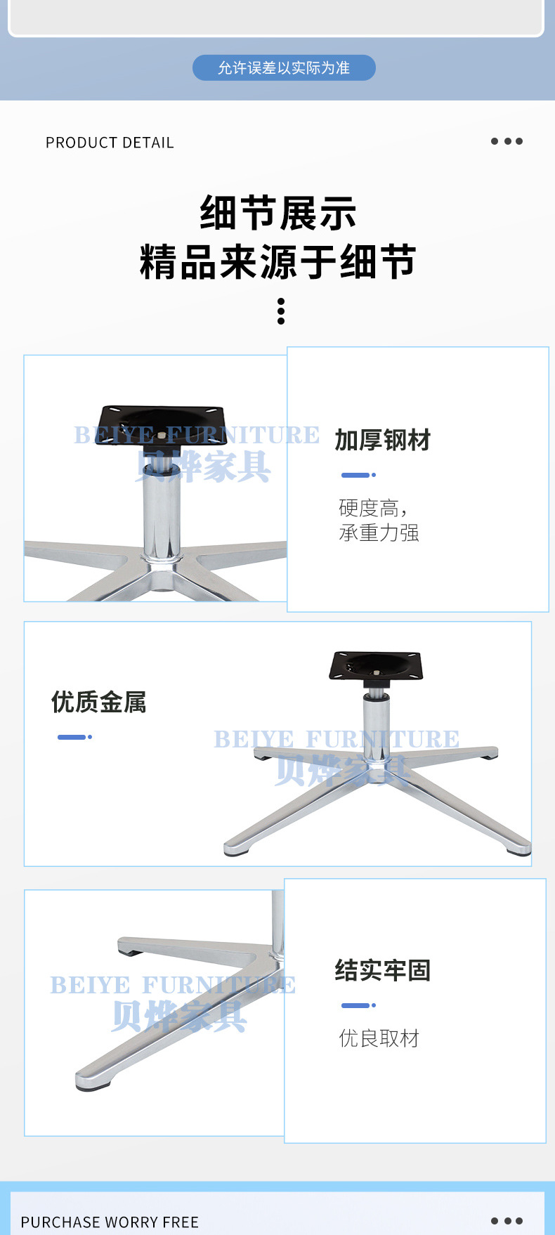 간단한 사무실 의자 베이스 브래킷 알루미늄 합금 4성 발 회전 의자 작은 액세서리 의자 두꺼운 4발판 섀시 발스토어 가기