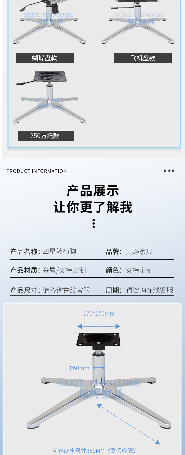 간단한 사무실 의자 베이스 브래킷 알루미늄 합금 4성 발 회전 의자 작은 액세서리 의자 두꺼운 4발판 섀시 발