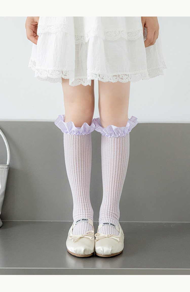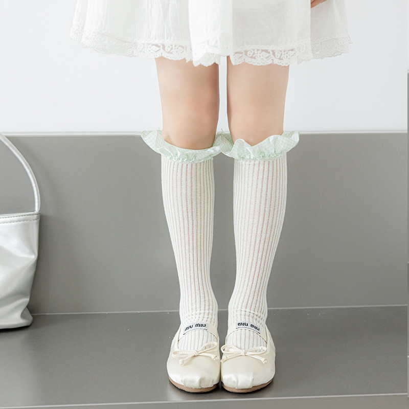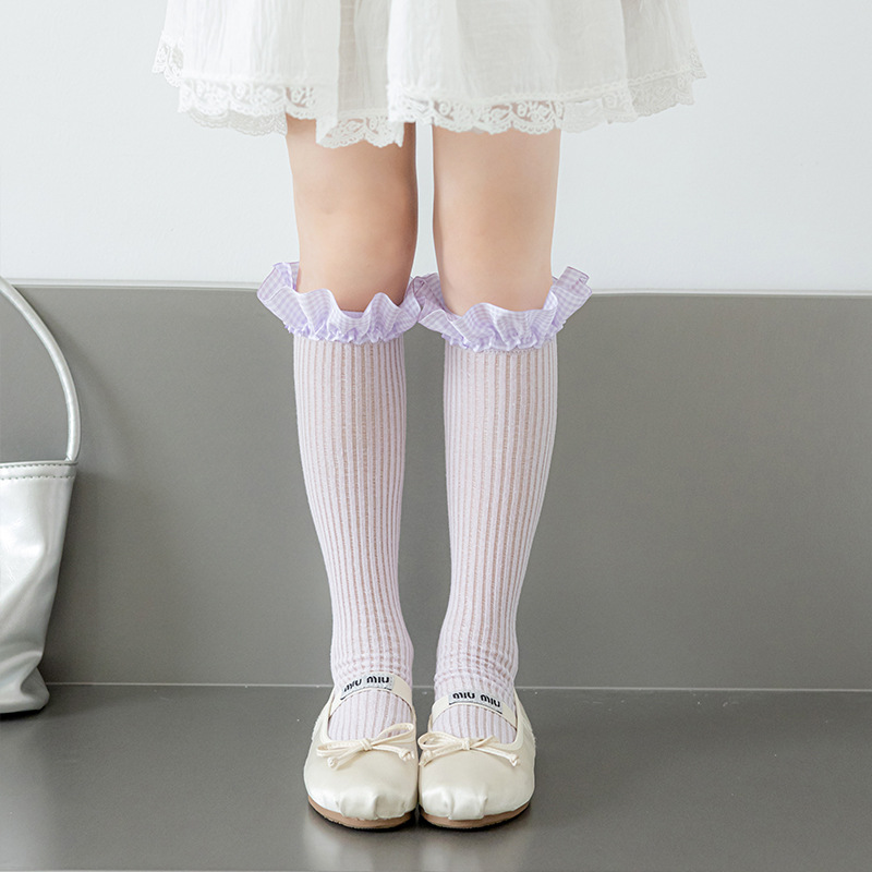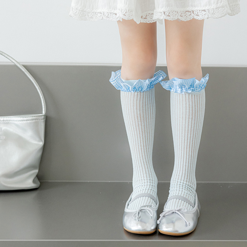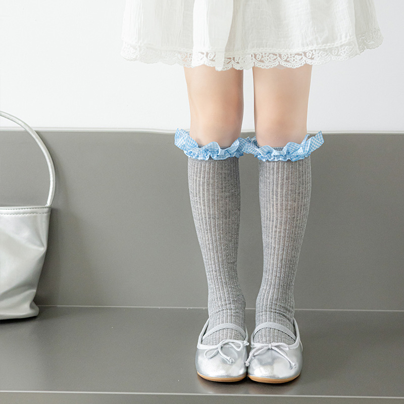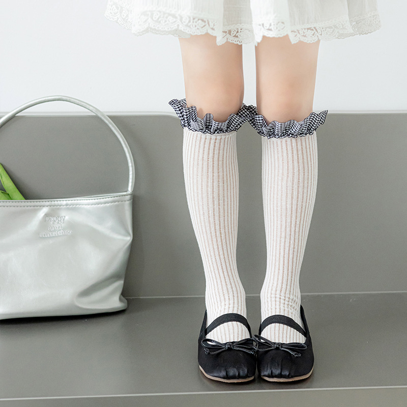 Misscucudog 어린이 뼈없는 양말 로리타 레이스 한국 소녀 봄, 가을 얇은 긴면 양말