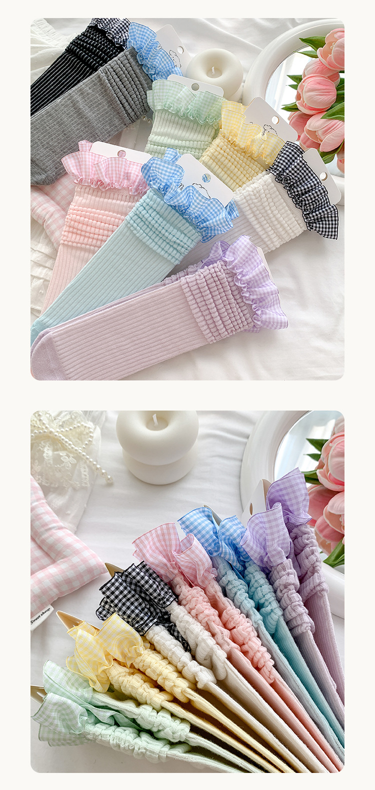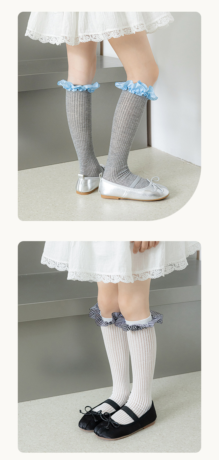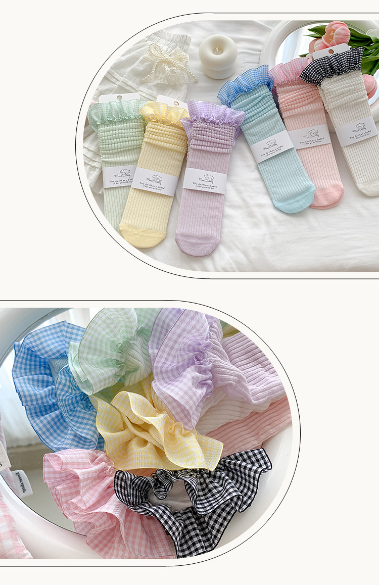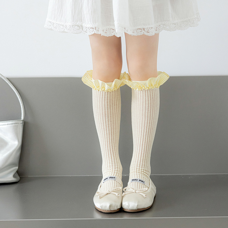 Misscucudog 어린이 뼈없는 양말 로리타 레이스 한국 소녀 봄, 가을 얇은 긴면 양말