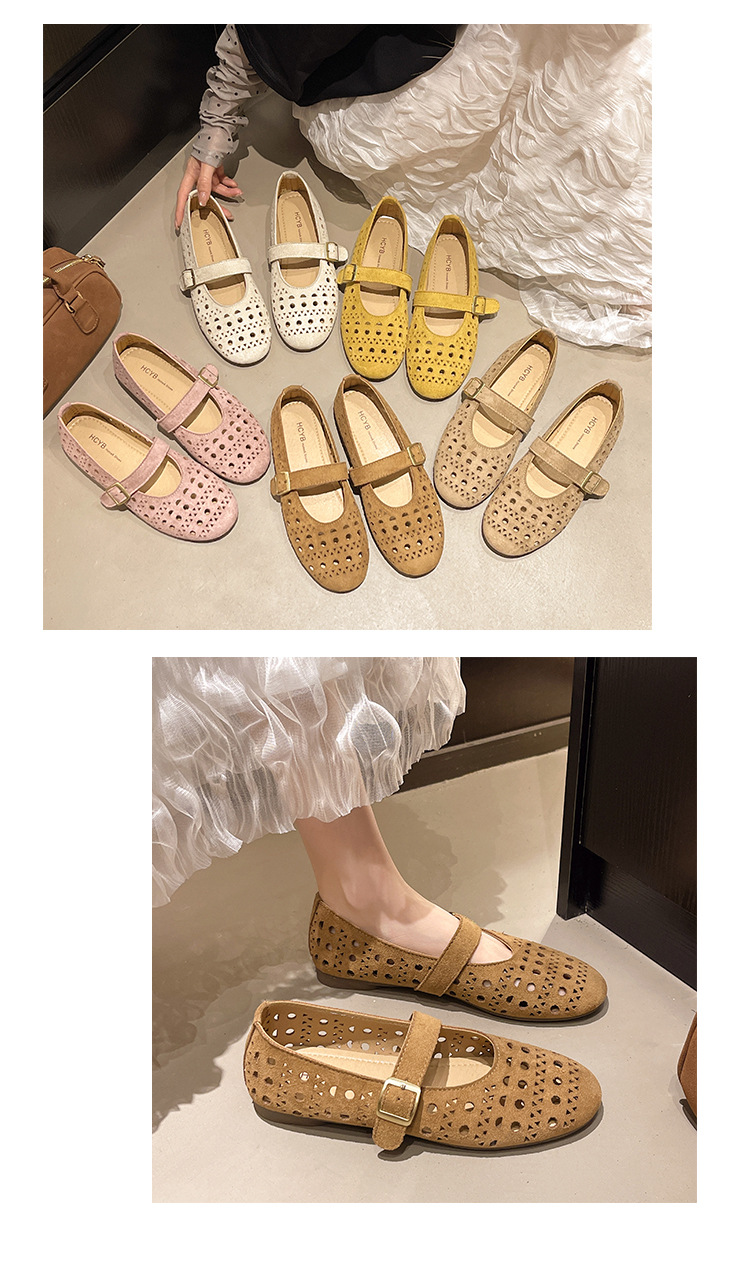 여성용 플랫 속이 빈 프렌치 니치 버켄스탁 슈즈 2025 봄 여름 이브닝 스타일 옐로우 메리 제인 할머니 슈즈스토어 가기