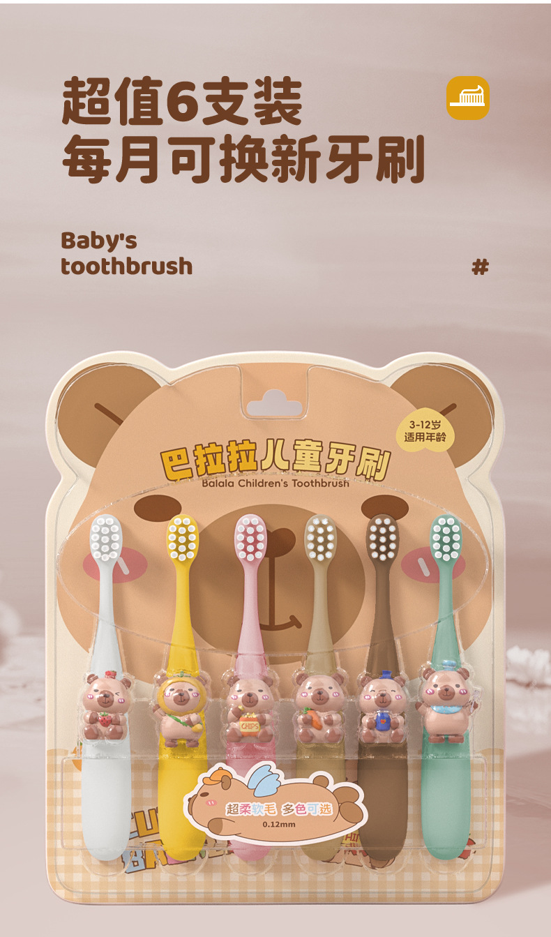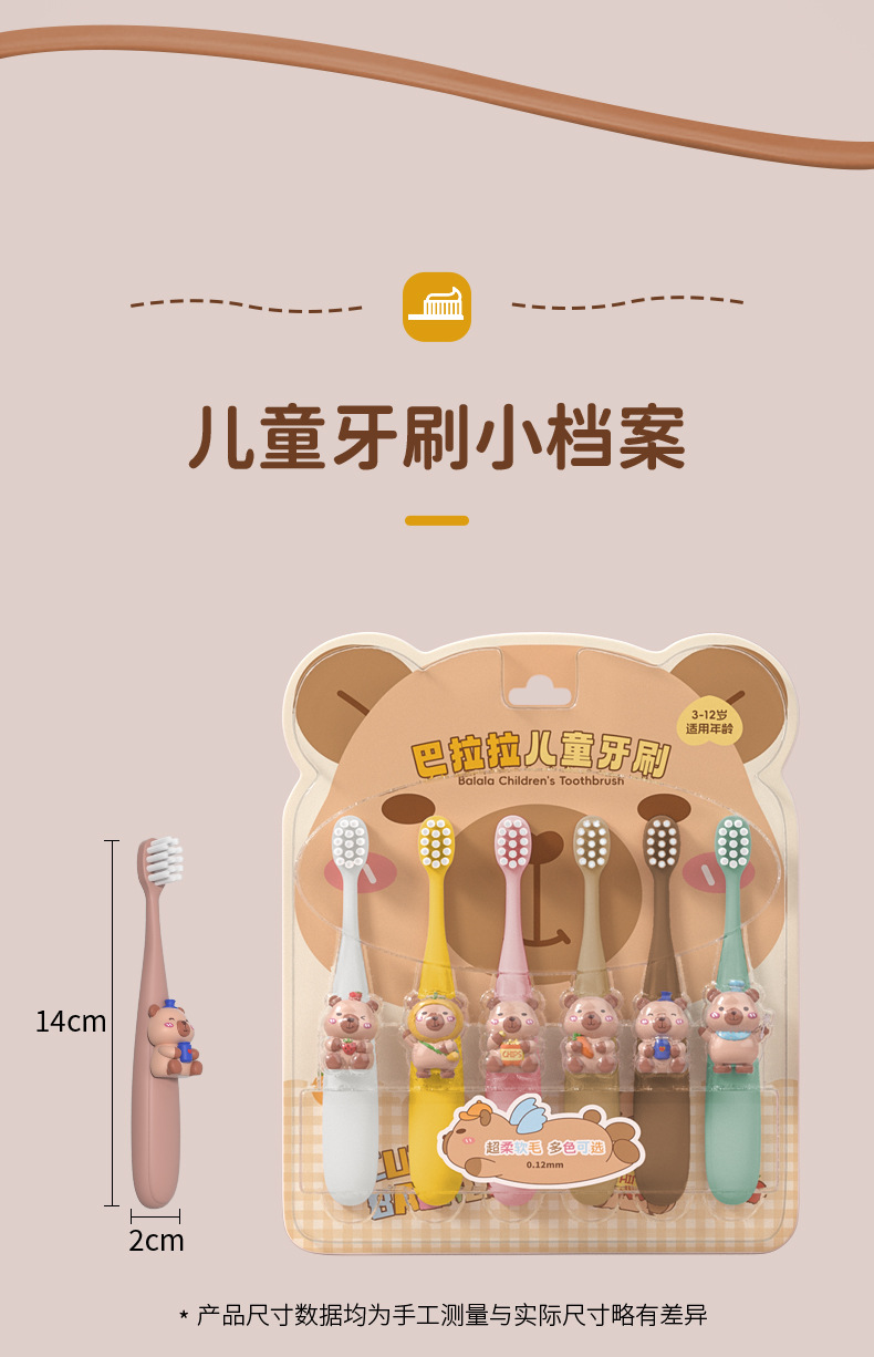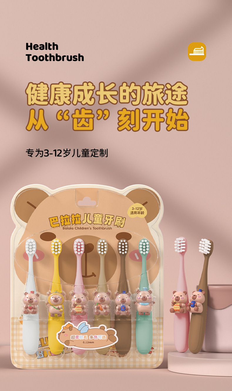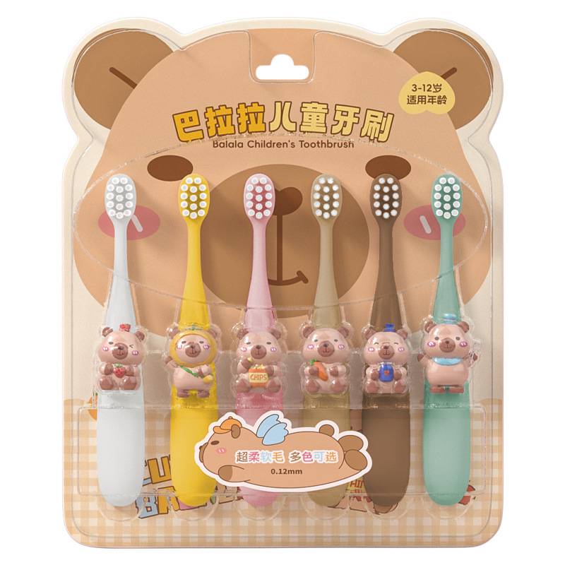 카피바라 어린이용 칫솔 부드러운 강모 3~12세 이상 유아용 칫솔 치아교정기 특수 유아용 칫솔