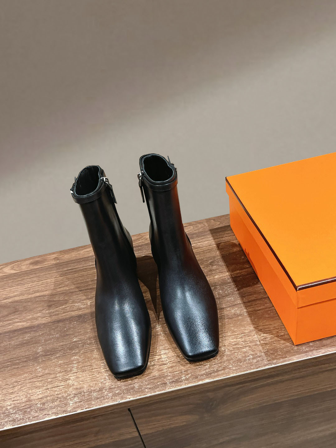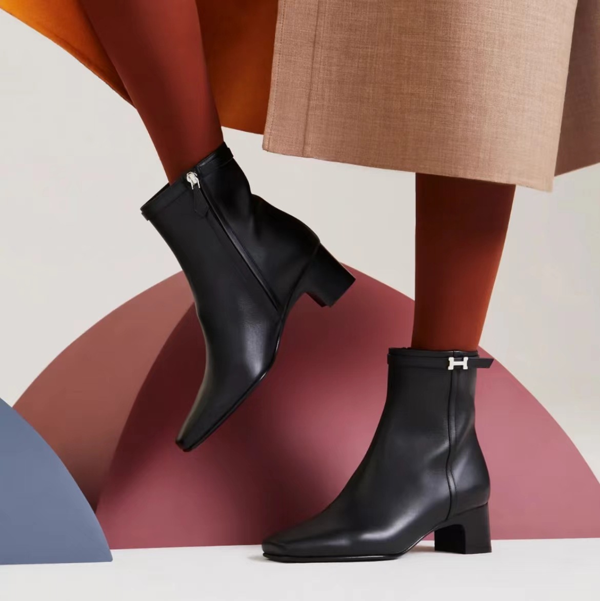 겨울과 가을 여성 스퀘어 토 사이드 지퍼 첼시 부츠 2025 두꺼운 미끄럼 방지 바닥 두꺼운 힐 마틴 부츠 가죽 부츠스토어 가기