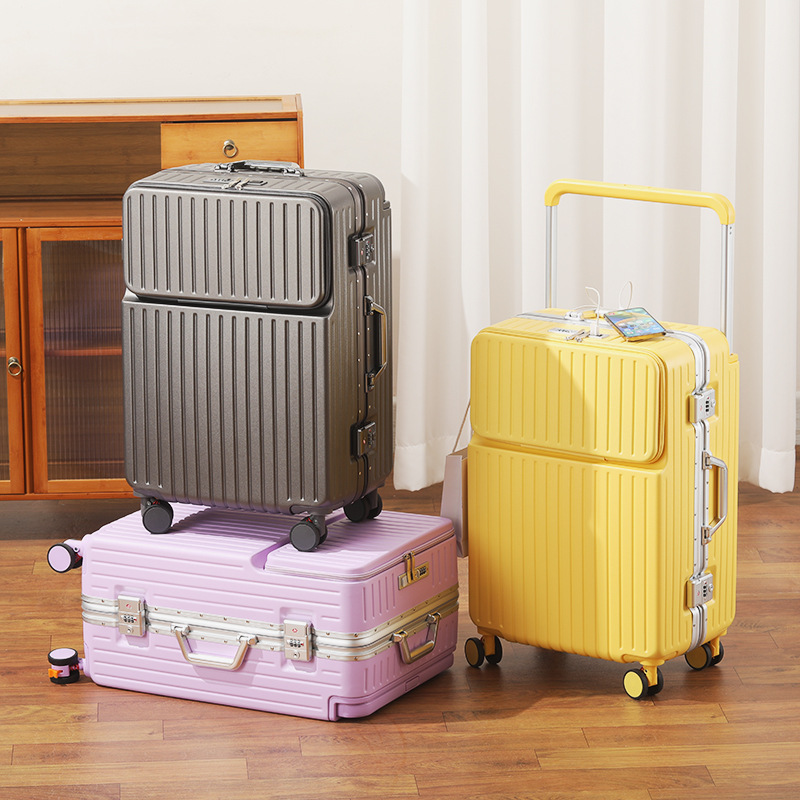 전면 개방형 와이드 트롤리 가방 새로운 알루미늄 프레임 남성용 및 여성용 트롤리 케이스 자동 비밀번호 상자 대용량 가방 24스토어 가기