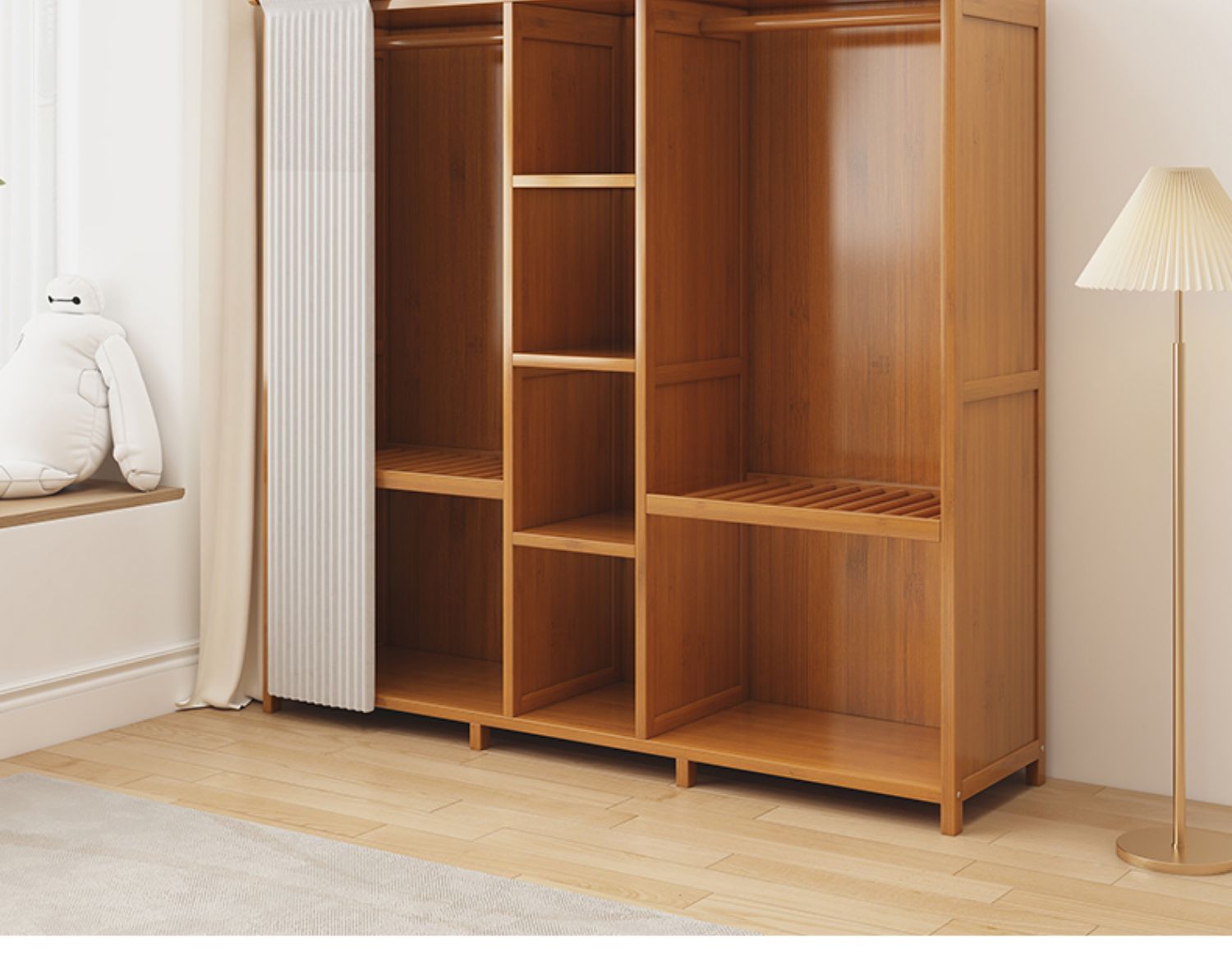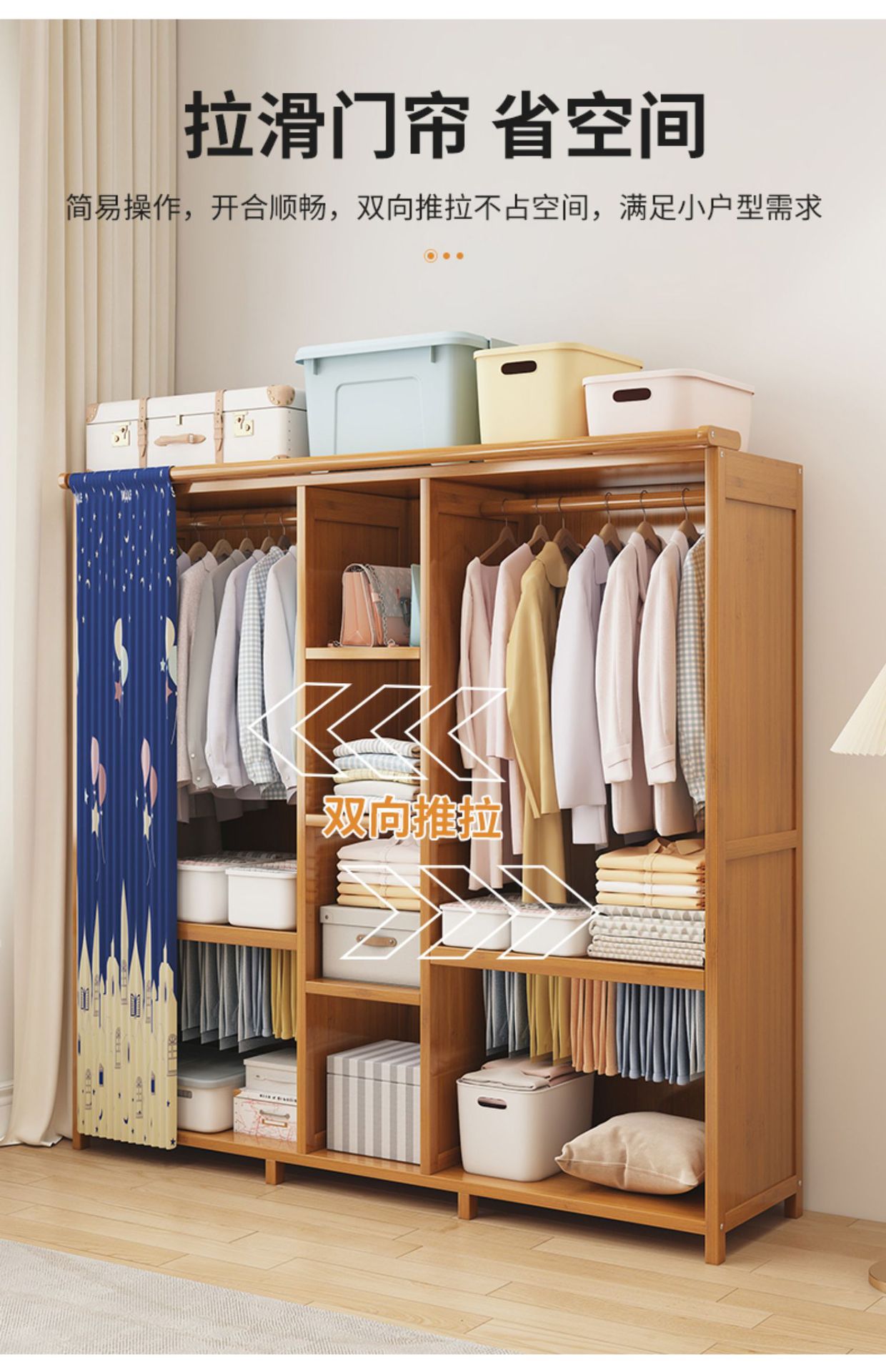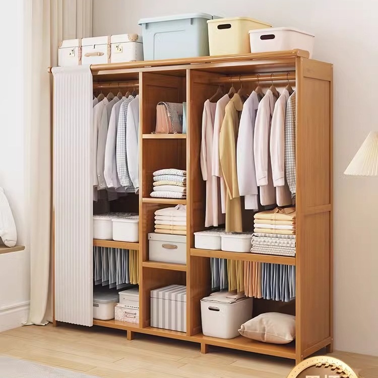 가정용 침실 옷장을 위한 간단한 단단한 나무 옷장 완전히 밀폐된 커튼 천 캐비닛 임대실 조립 두꺼운 옷 rω스토어 가기