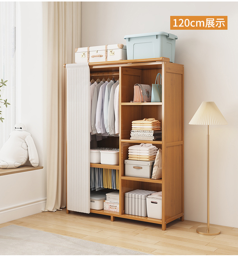 가정용 침실 옷장을 위한 간단한 단단한 나무 옷장 완전히 밀폐된 커튼 천 캐비닛 임대실 조립 두꺼운 옷 rω