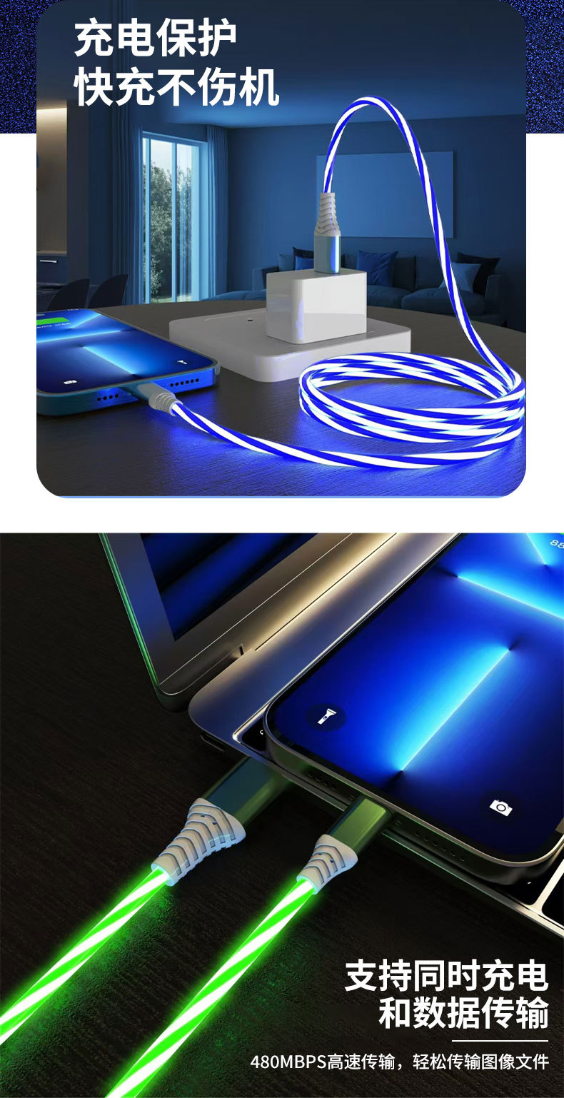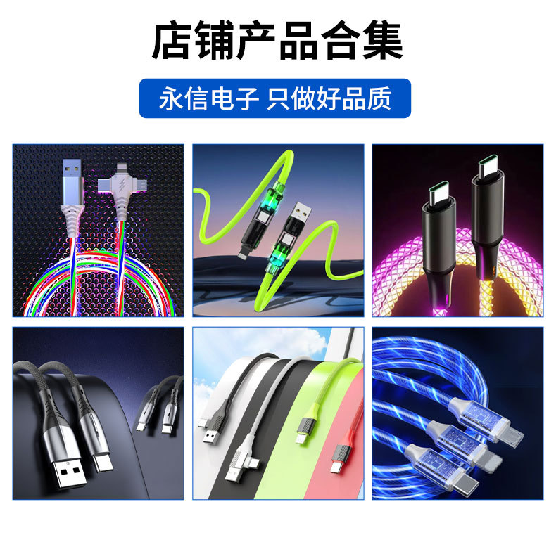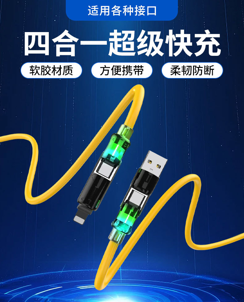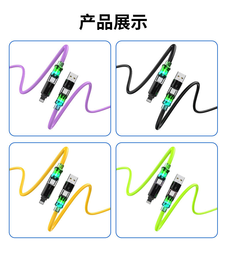 Type-c에 적합한 4-in-1 소프트 플라스틱 다채로운 초고속 충전 데이터 케이블 1.4m 표시등 라이트 컬럼 케이블스토어 가기