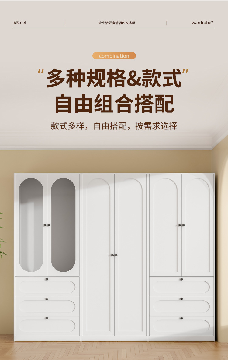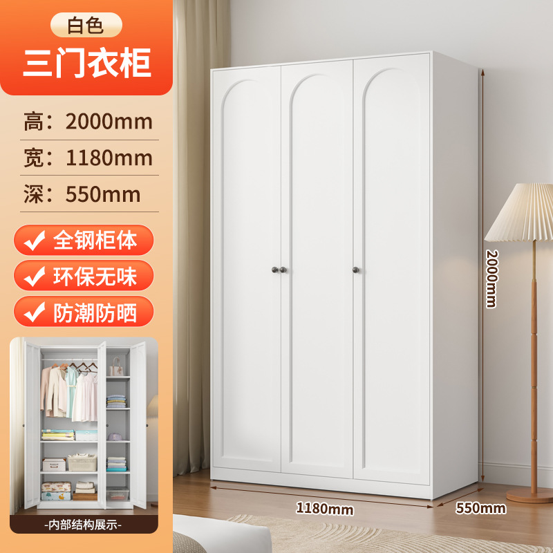두꺼운 강철 옷장 홈 침실 간단한 조립 유럽 스타일 2025 새로운 금속 3 도어 옷장 작은 아파트스토어 가기