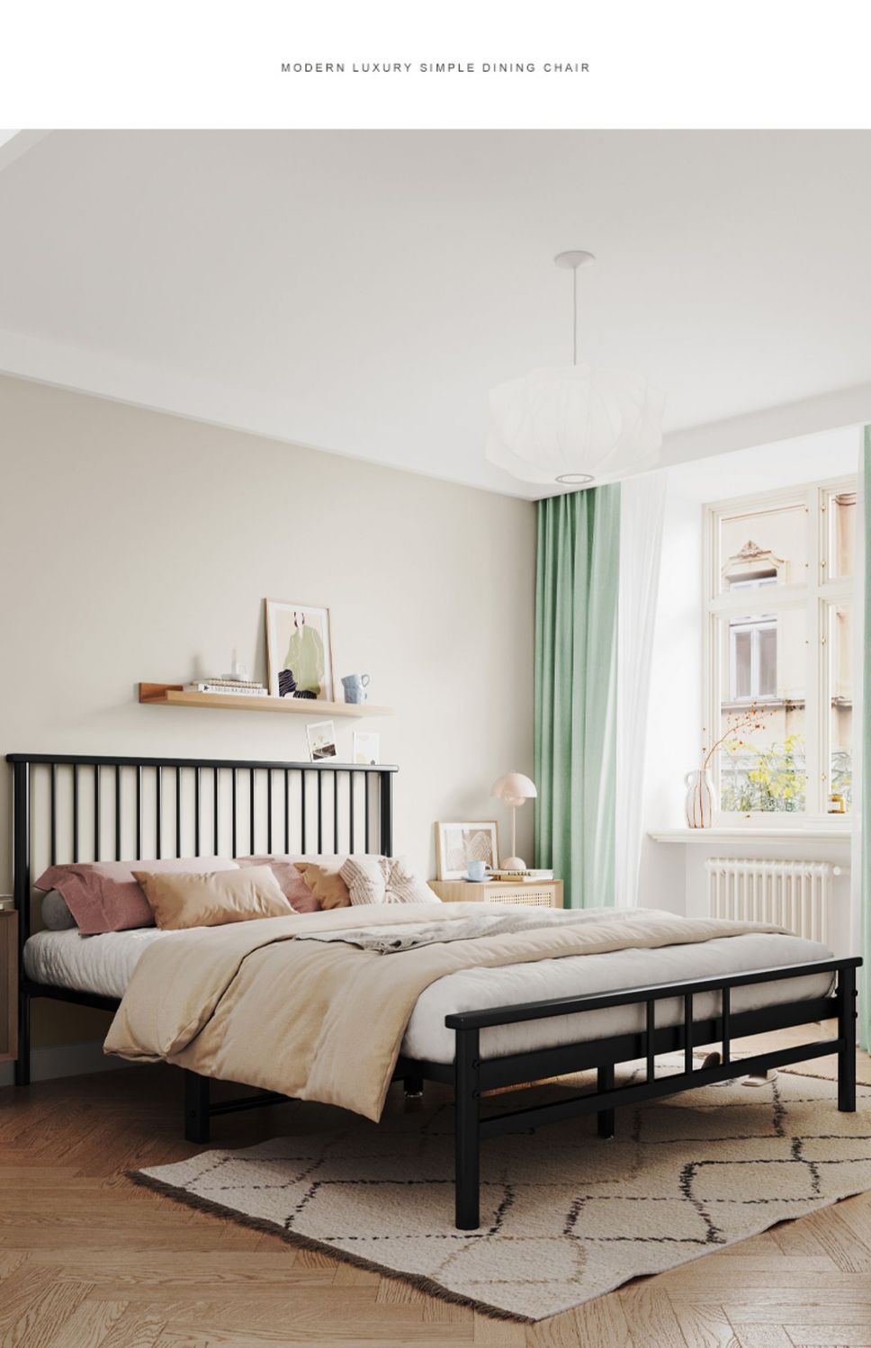 유럽식 철제 침대 심플 모던 더블 침대 철제 침대 1.5m 싱글 철제 프레임 침대 1.8m 강화 기숙사 침대 1m
