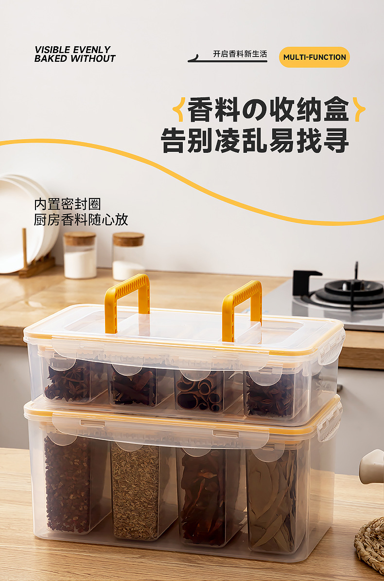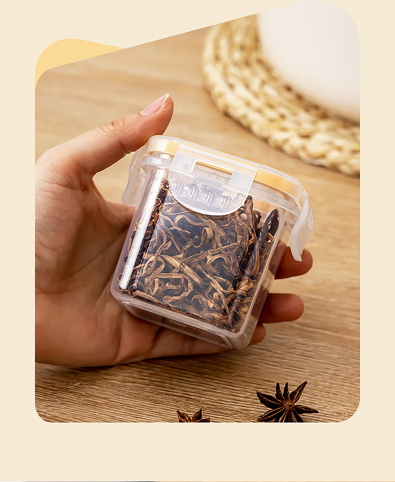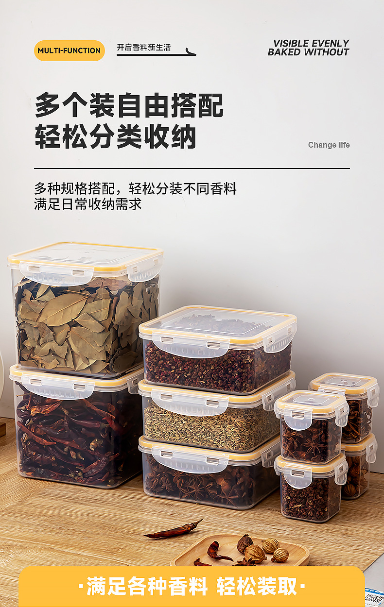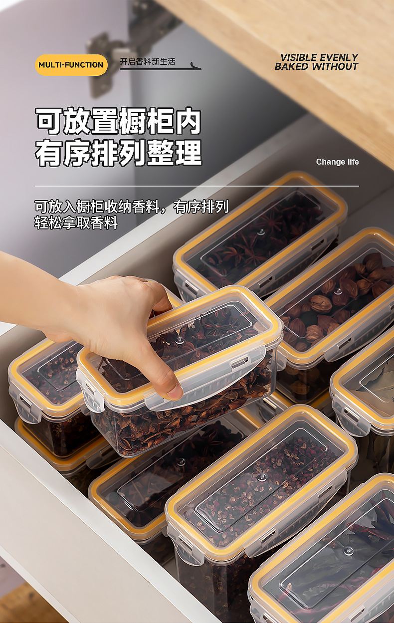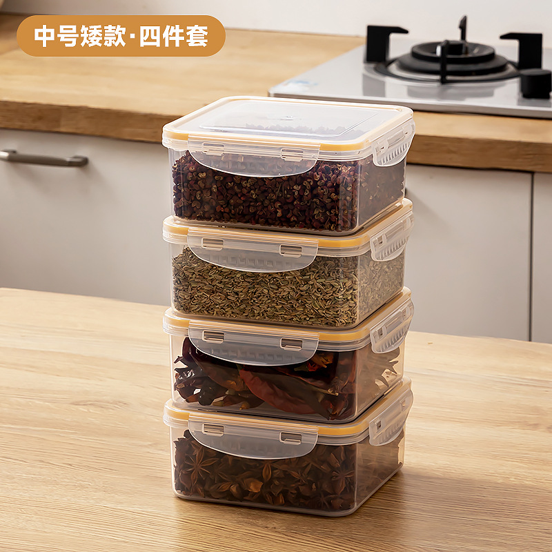 뚜껑이 있는 캐비닛 보관 조미료 보관 상자, 밀봉된 크리스퍼 상자, 식품 등급 조미료 용품, 곡물 보관 상자