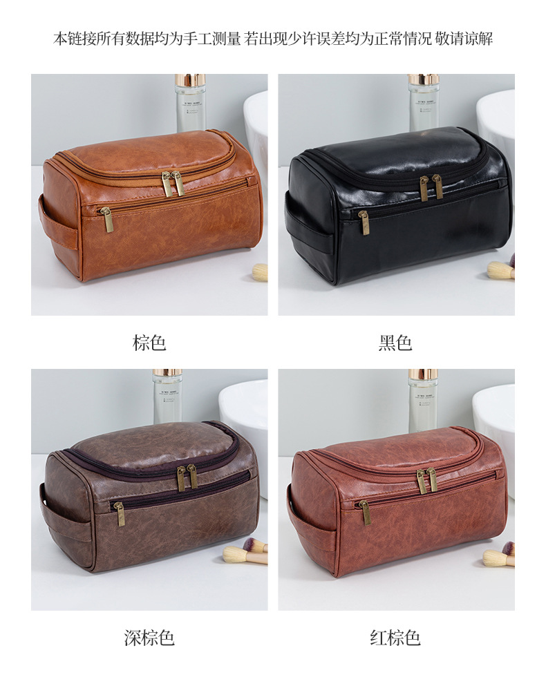 남성용 해외출장 세면도구 가방, 측면 휴대 가능, 걸이 가능한 PU 화장품 가방, 가죽 여행용품 수납 가방스토어 가기