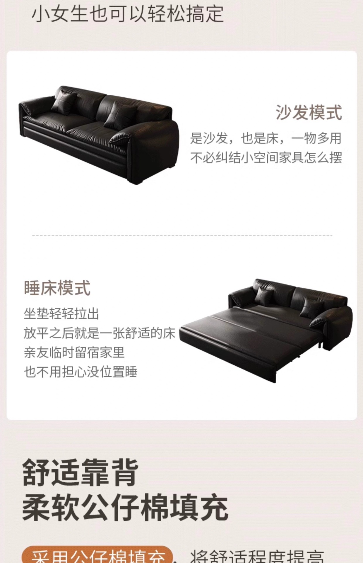 중세 스타일 복고풍 스타일 소파 베드 현대적인 가벼운 럭셔리 접이식 좌식 및 수면 이중 목적 작은 아파트 거실 Tω 목재 Tω스토어 가기