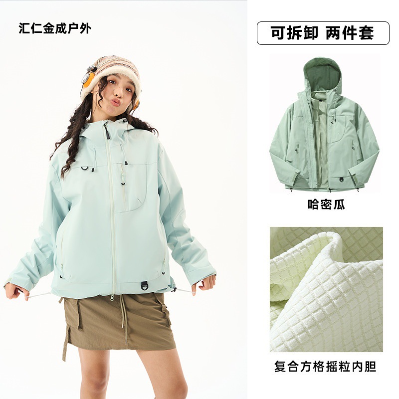 Kongshan Yu 자켓 여성용 야외 후드 투피스 방풍 및 방수 패션 캐주얼 등산복 남성용 아메리칸 자켓스토어 가기