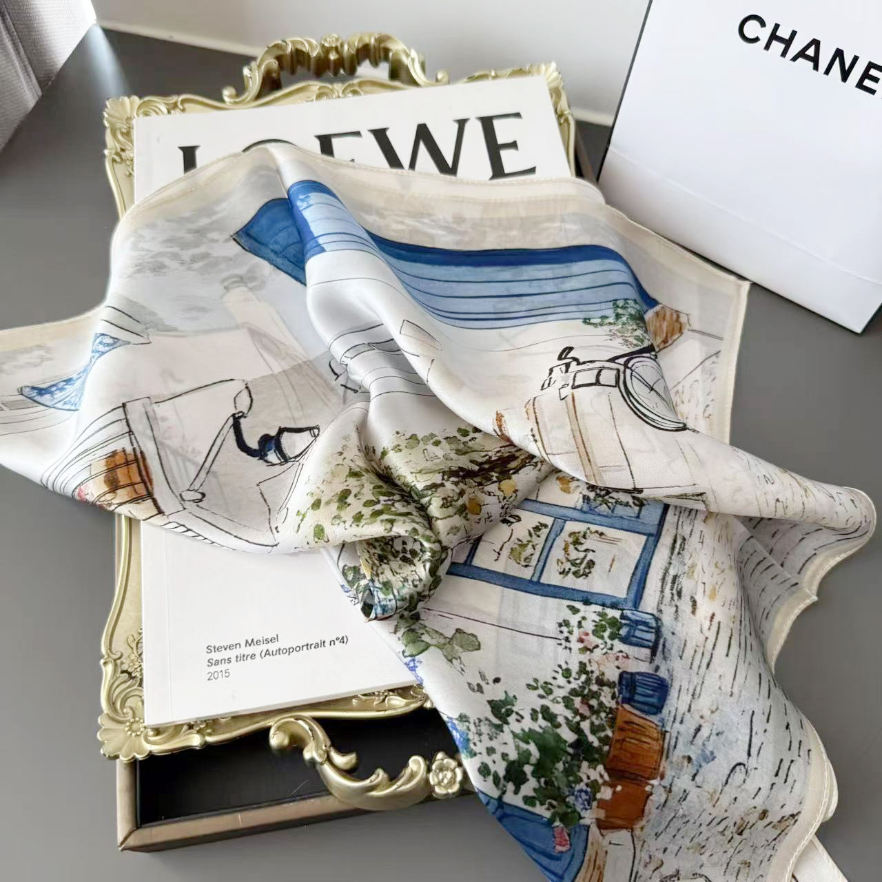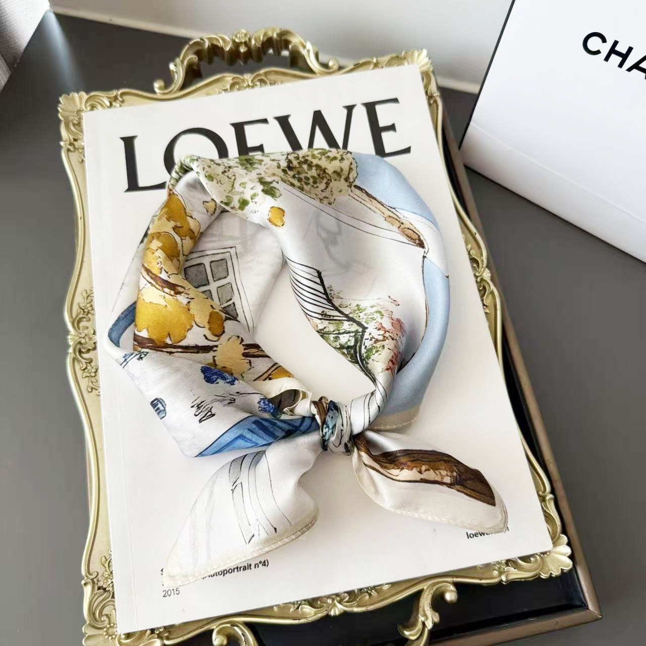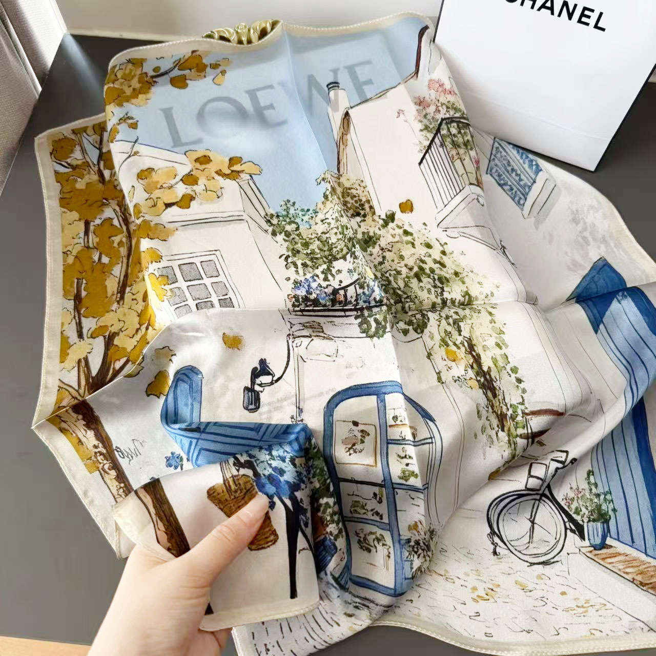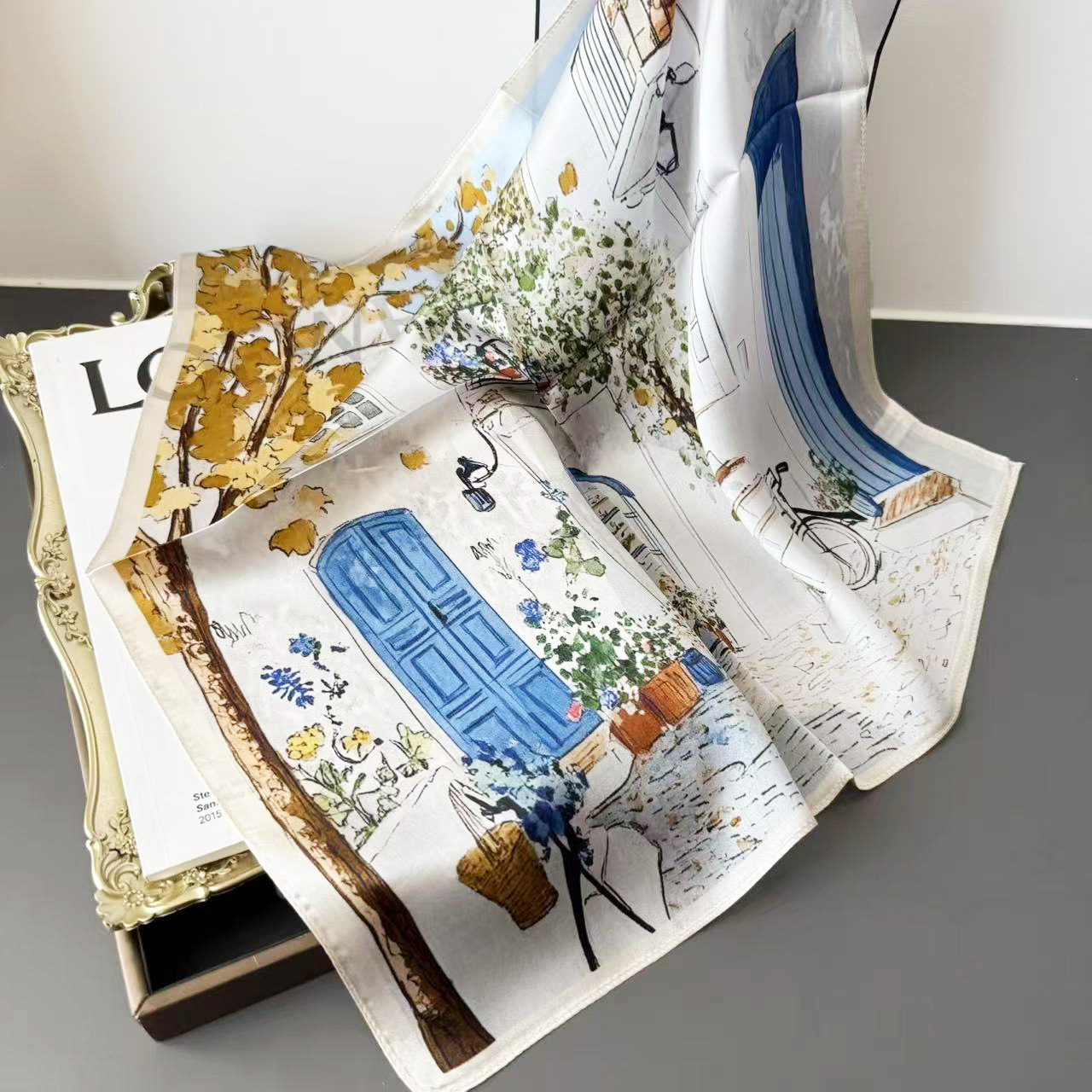 문학적 유화 실크 뽕나무 실크 작은 사각형 스카프 여성용 다용도 작은 신선한 봄, 가을 스타일 고급 스카프스토어 가기