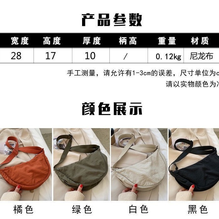 패셔너블한 캐주얼 크로스백, 새로운 숄더백, 심플하고 가벼운 나일론 천 만두백, 다용도 통근 핫셀링 여성용 가방
