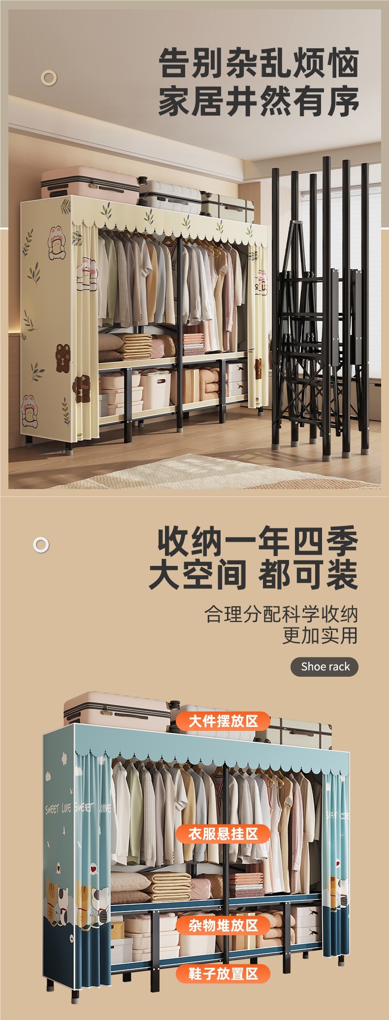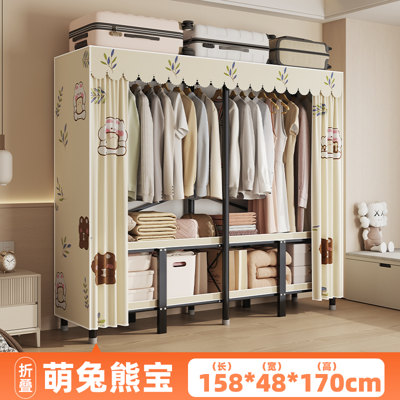 옷장 홈 침실 설치가 필요없는 접이식 간단한 천 옷장 임대실 전체 강철 프레임 튼튼하고 내구성이 뛰어난 옷장