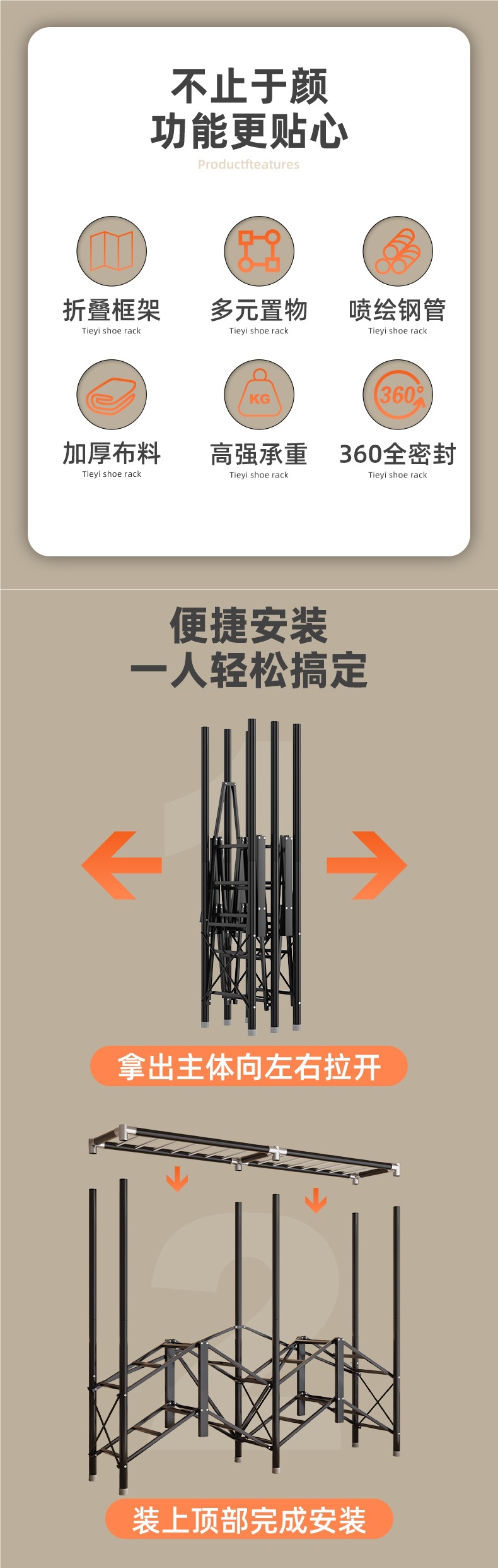• 펼쳐서 사용 [오렌지캣 1.98m 마리] (23MM 두꺼운 원형관 + 탄소강 두꺼운 강관)