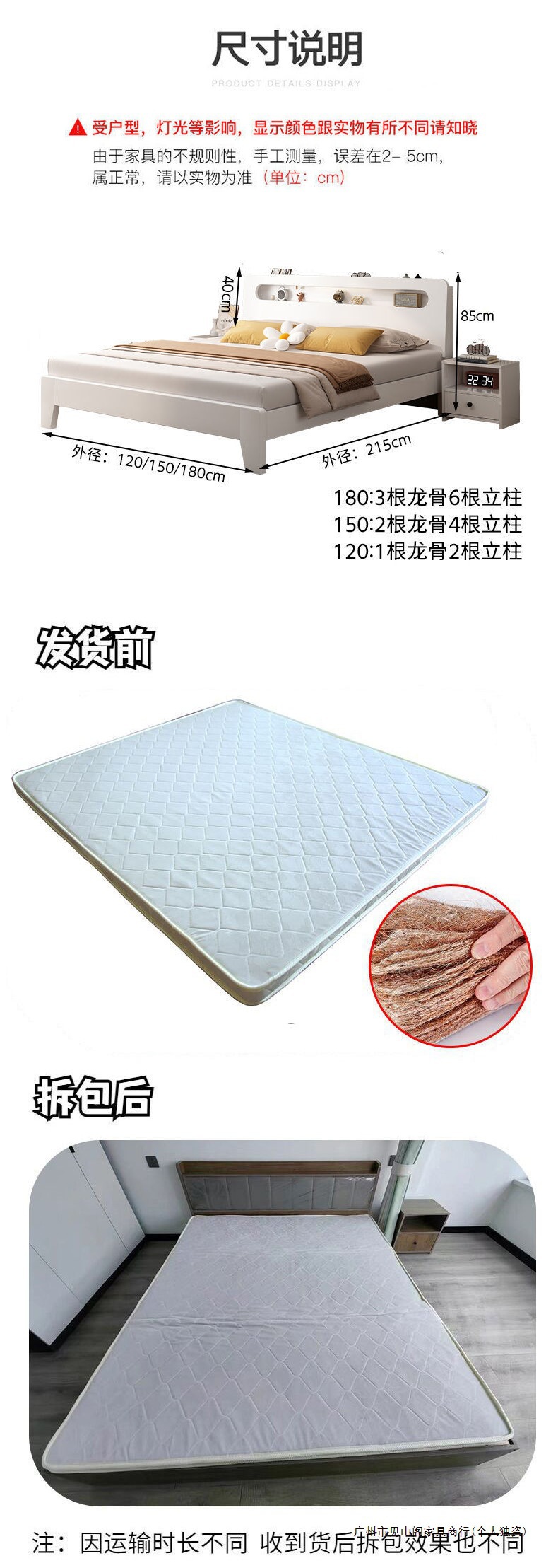 • 두꺼운 크림 화이트 침대 + 코코넛 야자 매트리스 + 패키지 설치