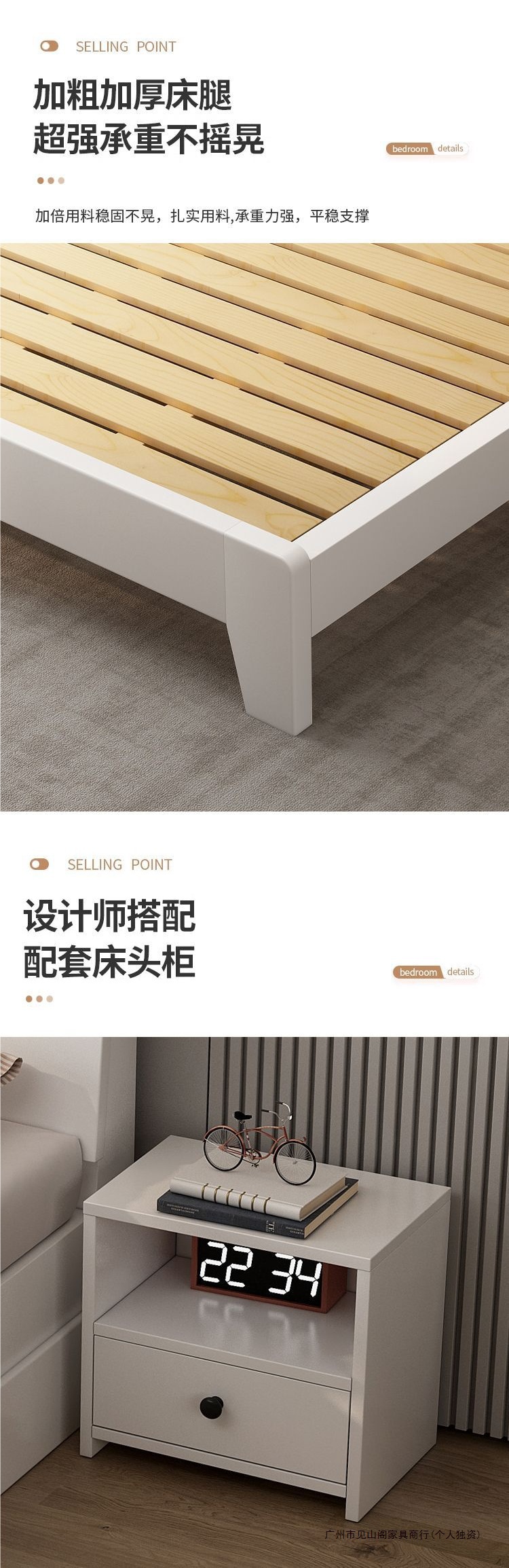 • 크림 화이트 침대 + 두꺼운 매트리스 + 캐비닛 2개 + 패키지 설치