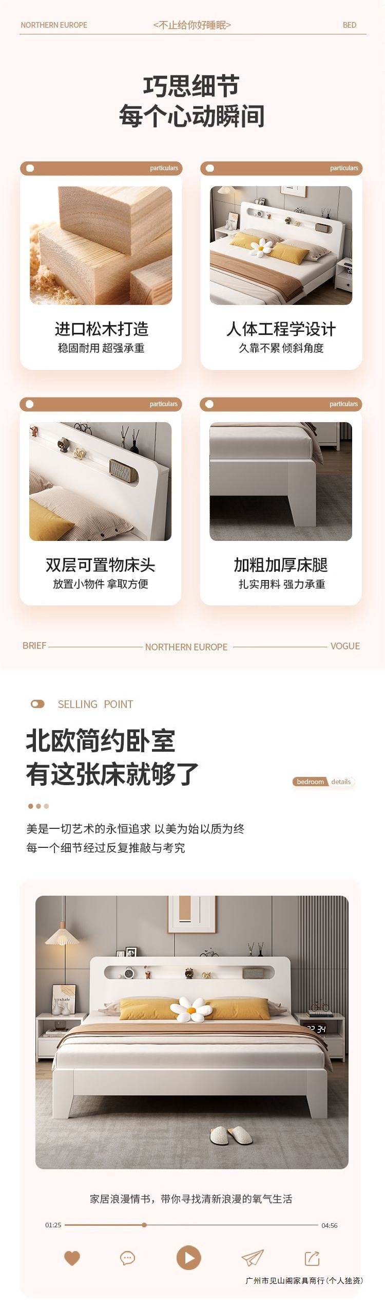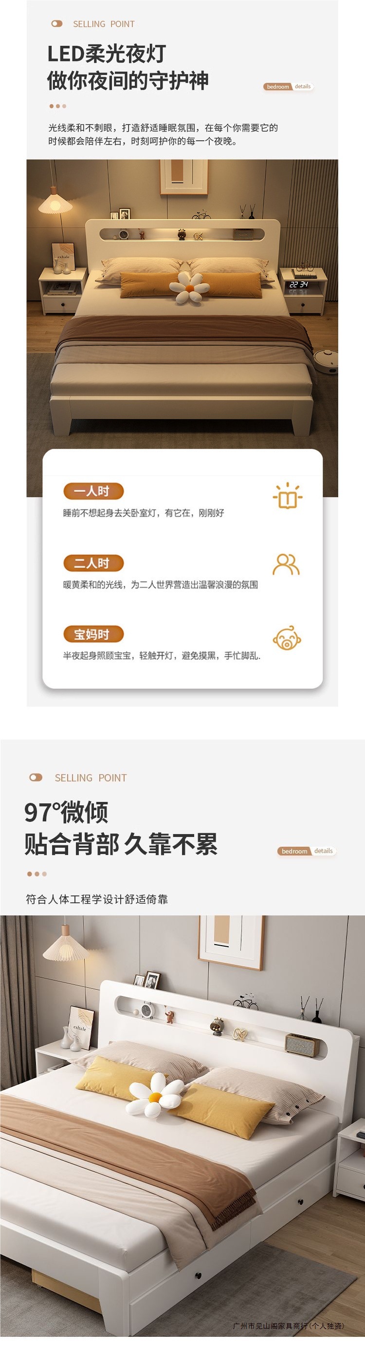 • 크림 화이트 침대 + 두꺼운 매트리스 + 캐비닛 1개 + 패키지 설치