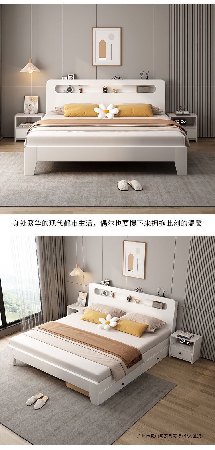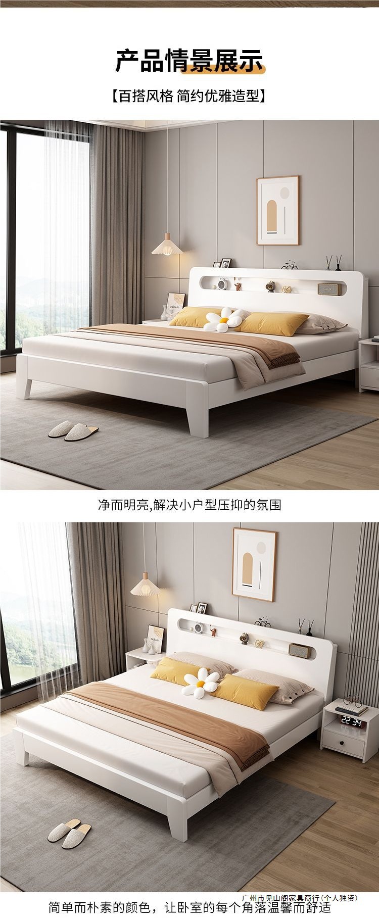 • 두꺼운 크림 화이트 침대 + 두꺼운 매트리스 + 패키지 설치