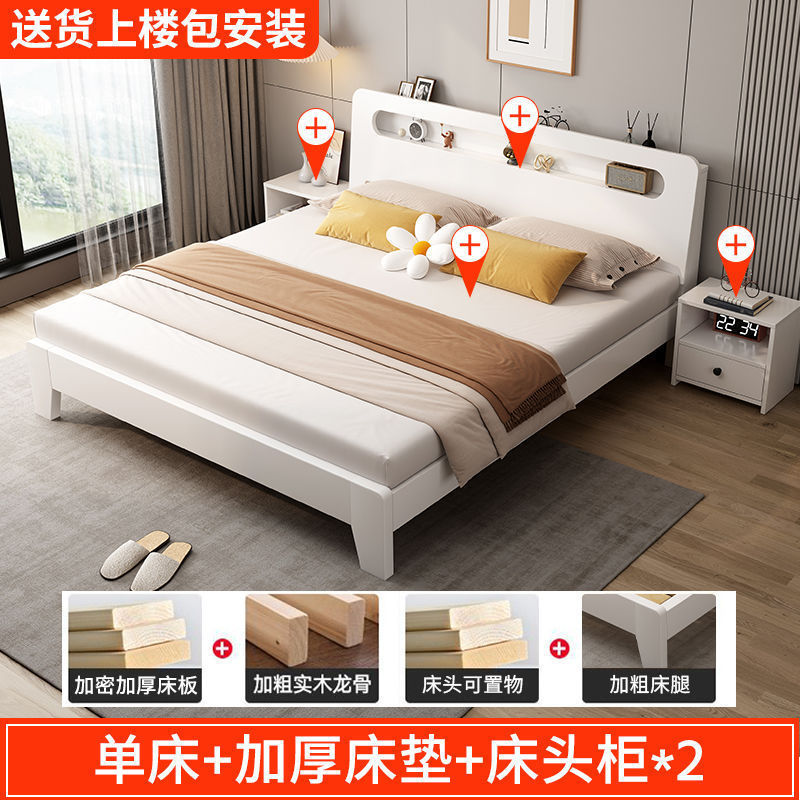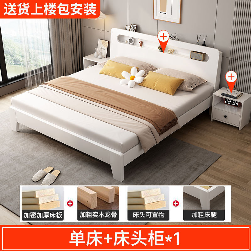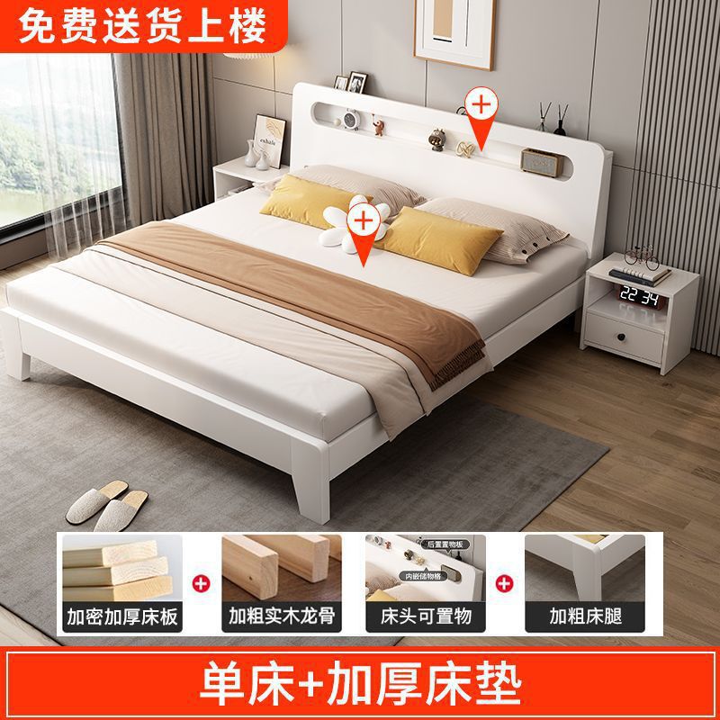 뜨거운 판매 단단한 나무 침대 크림 스타일 침대 1.5m 홈 마스터 침실 대형 침대 1.8m 싱글 더블 침대 임대 특별 가격스토어 가기