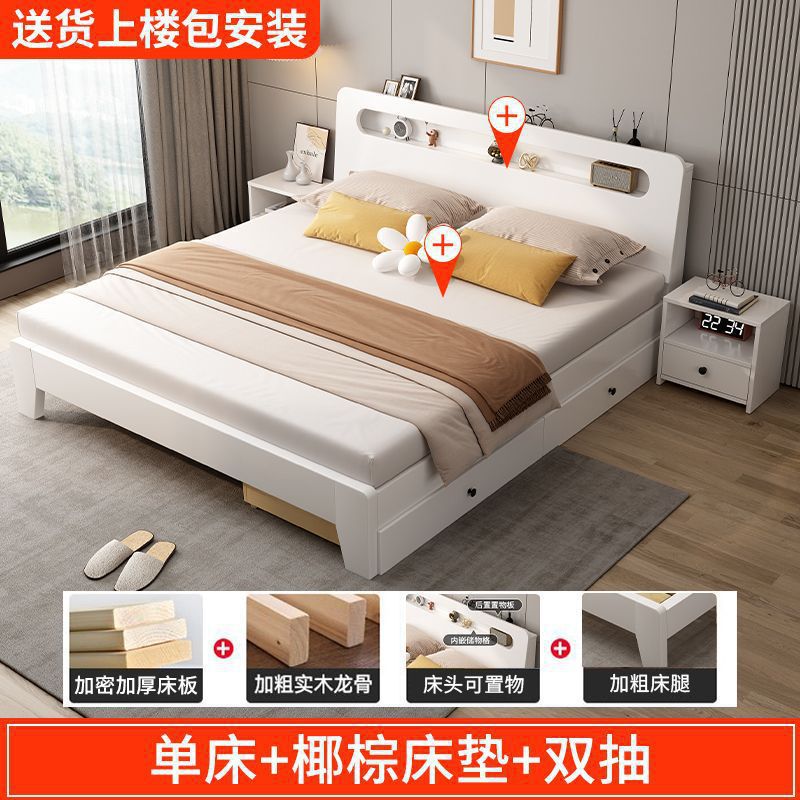 • 두꺼운 크림 화이트 침대 + 코코넛 야자 매트리스 + 더블 서랍, 설치 포함