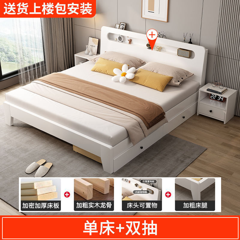 • 크림 화이트 침대 + 두꺼운 매트리스 + 더블 서랍 + 패키지 설치