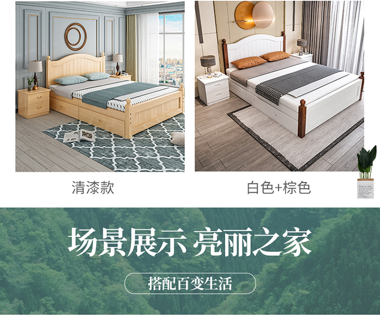 • 바니시 침대 + 서랍 + 매트리스 (새롭고 두꺼워짐)