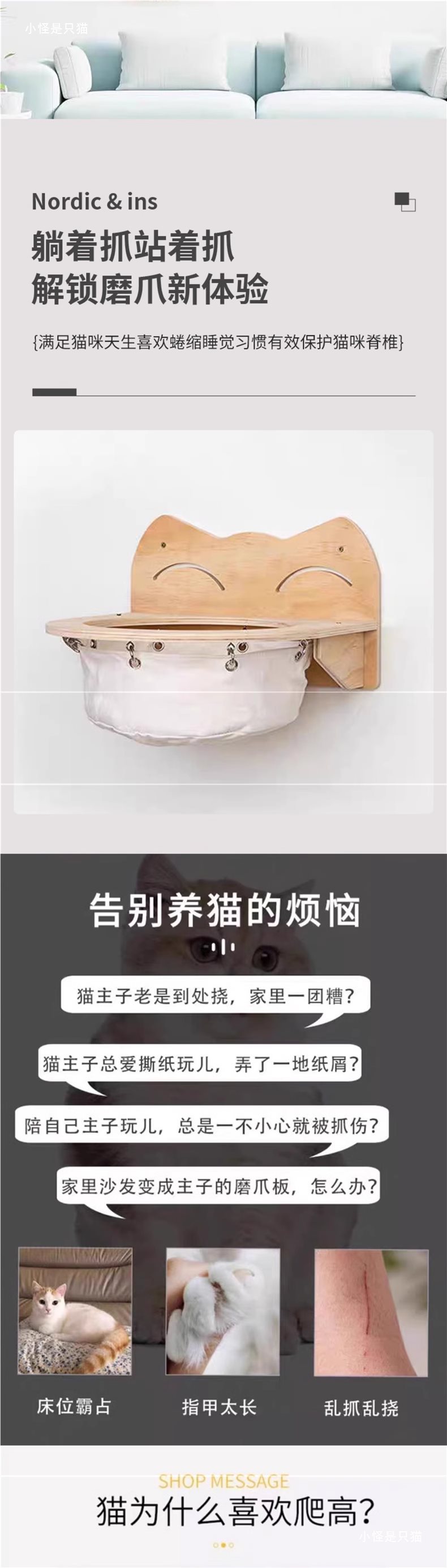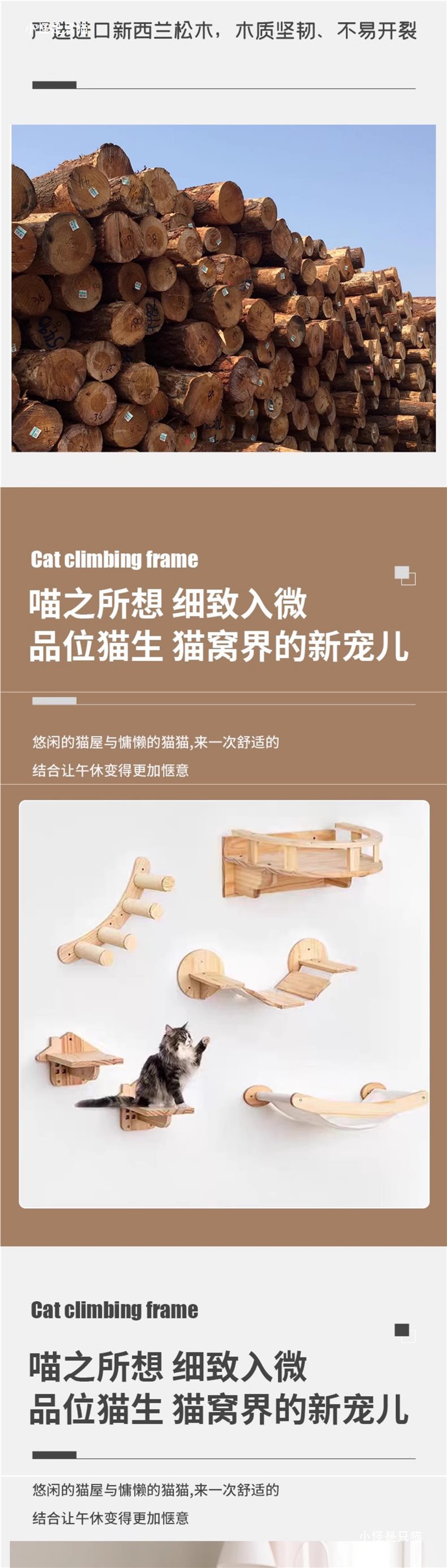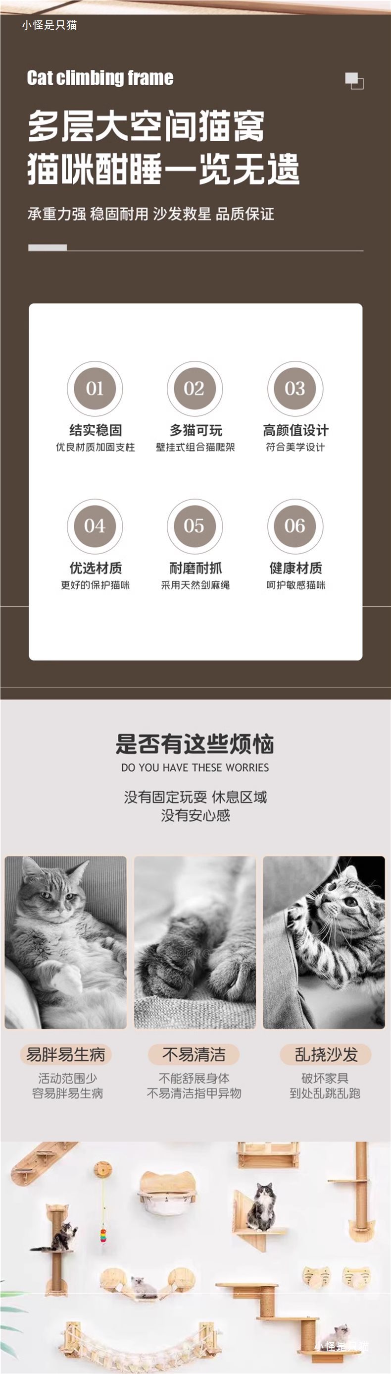 고양이 클라이밍 프레임 벽걸이형 원목 벽걸이형 고양이 프레임 고양이 둥지 벽걸이형 점프 플랫폼 없음 그립 포스트 사다리 대마 로프