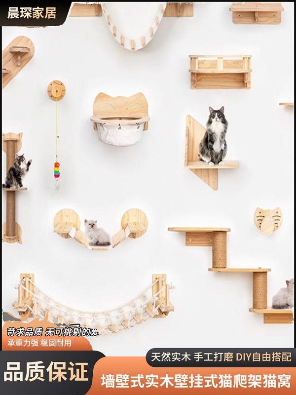 고양이 클라이밍 프레임 벽걸이형 원목 벽걸이형 고양이 프레임 고양이 둥지 벽걸이형 점프 플랫폼 없음 그립 포스트 사다리 대마 로프스토어 가기