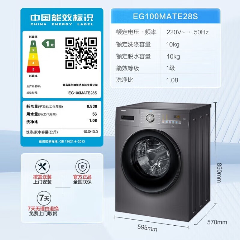 Haier 드럼 세탁기 완전 자동 10kg 초박형 플랫 대용량 고 살균 진드기 이중 스프레이 다채로운 스크린스토어 가기