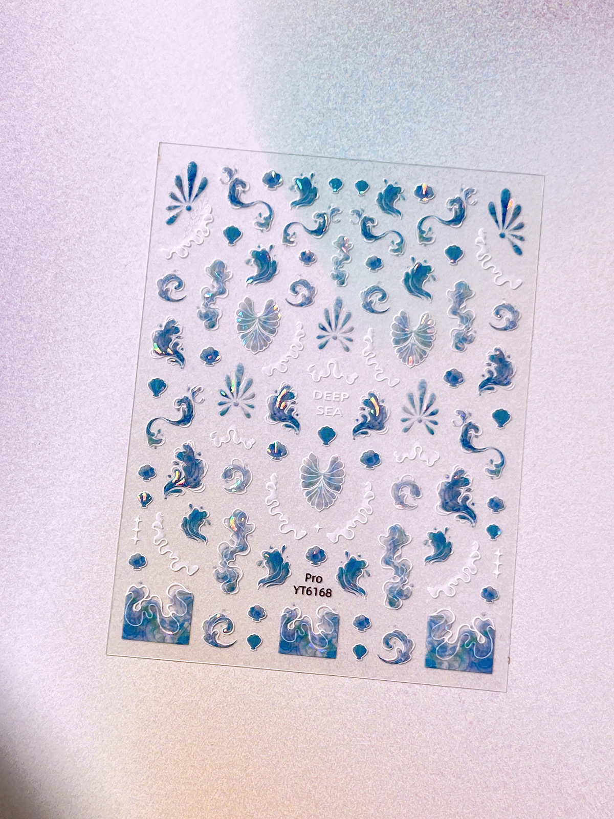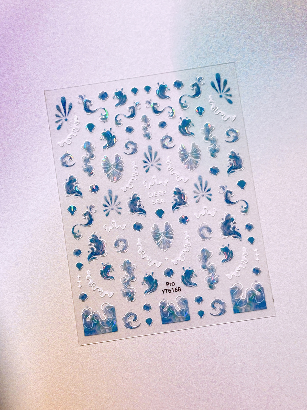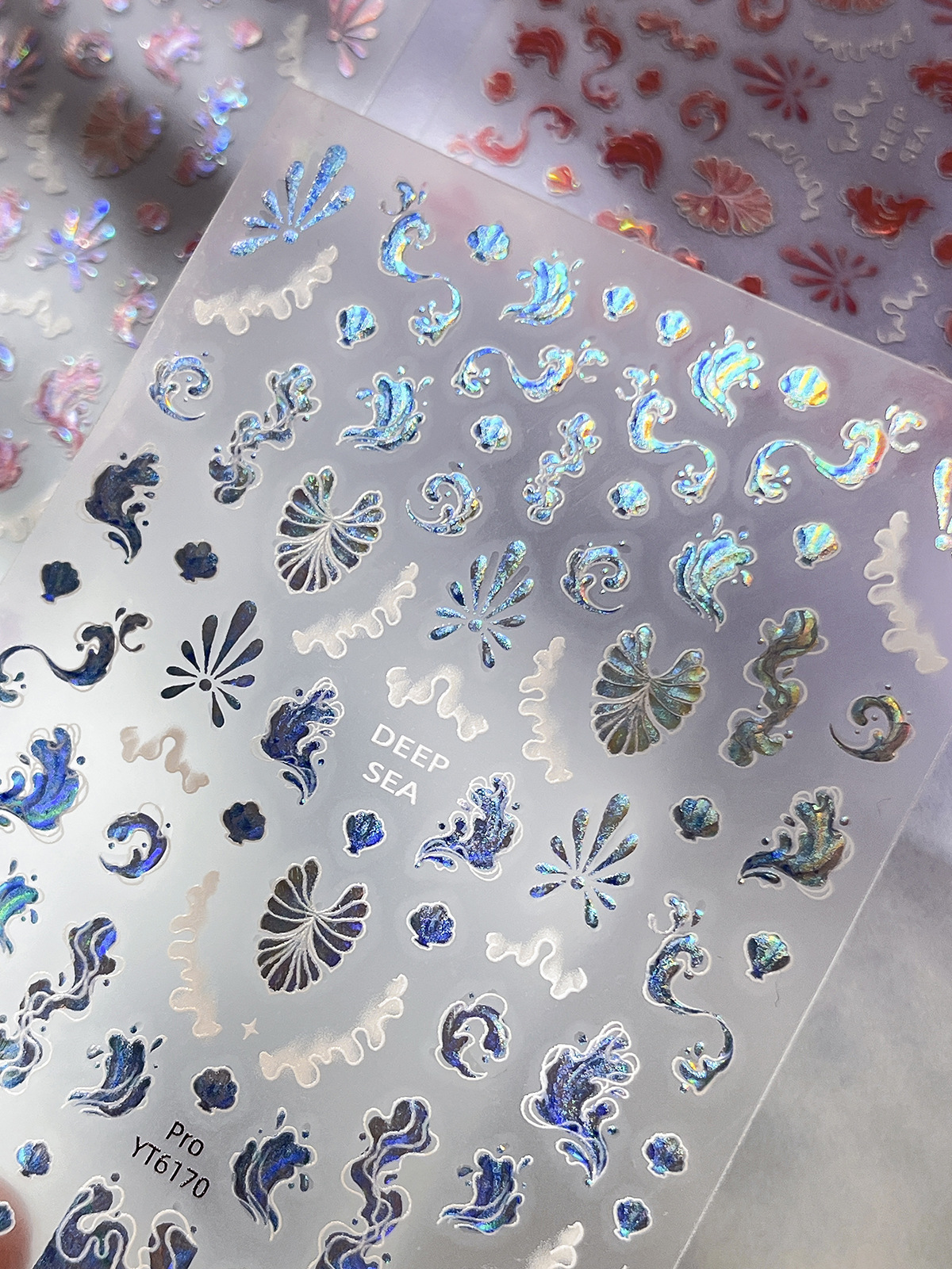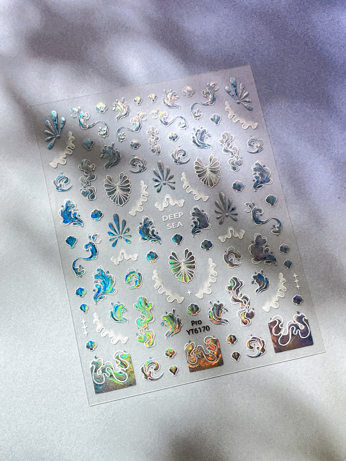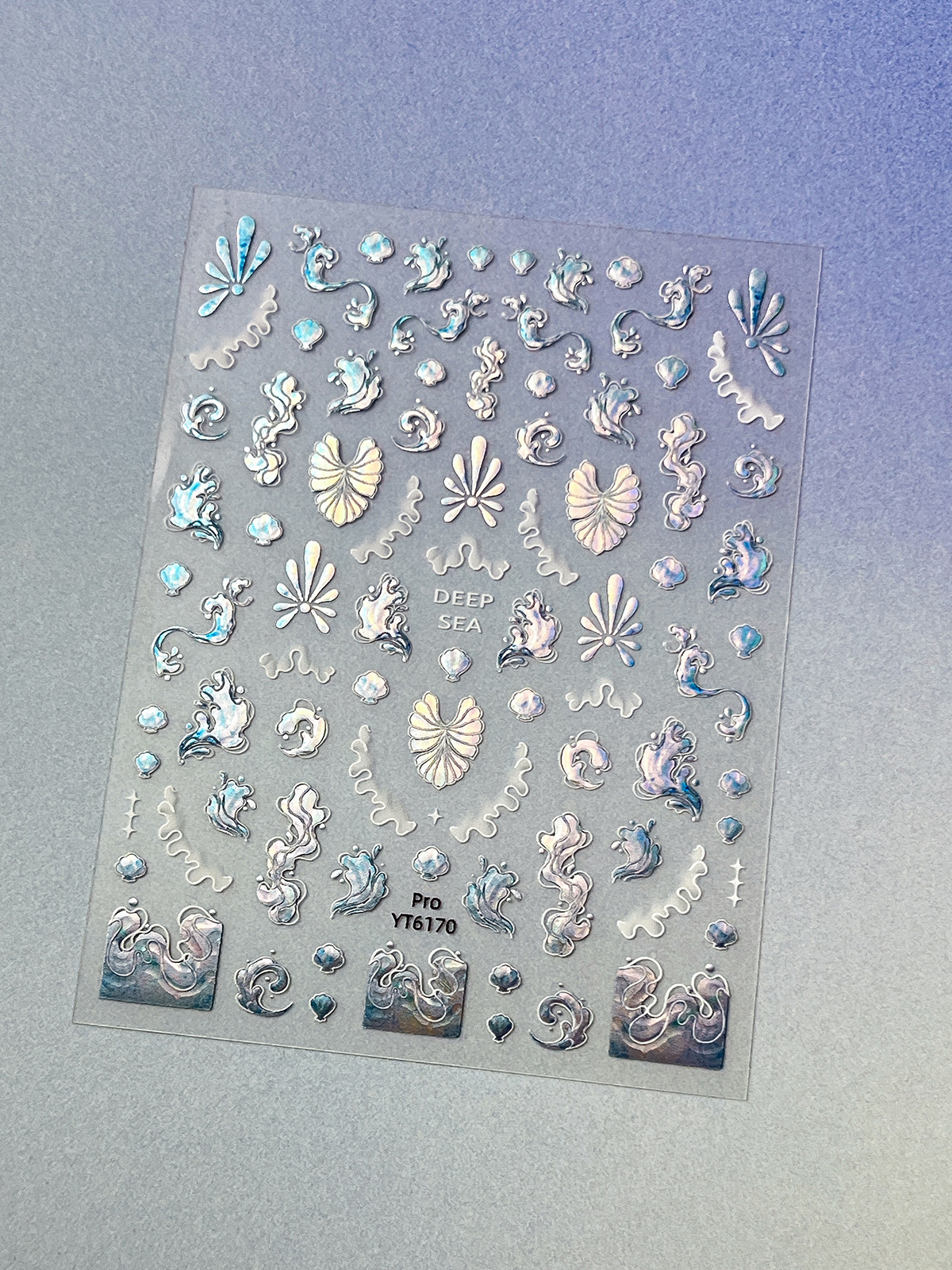 YITU Antshell 라이트 실버 레이저 웨이브 네일 아트 스티커 깜박이는 절묘한 인기 장식 스티커 YT6168스토어 가기