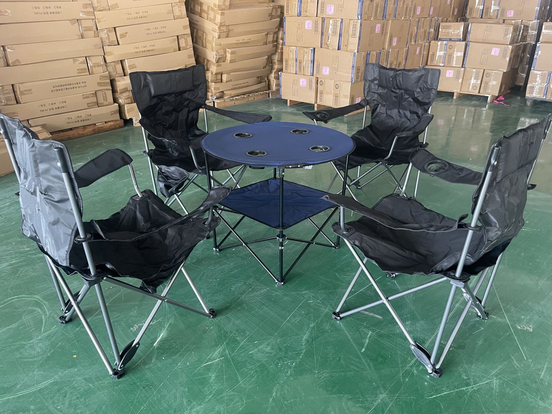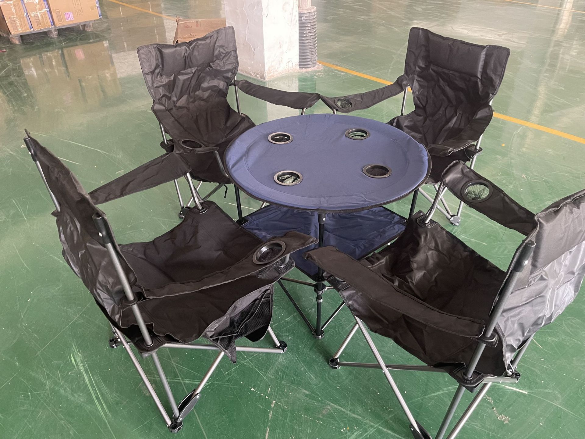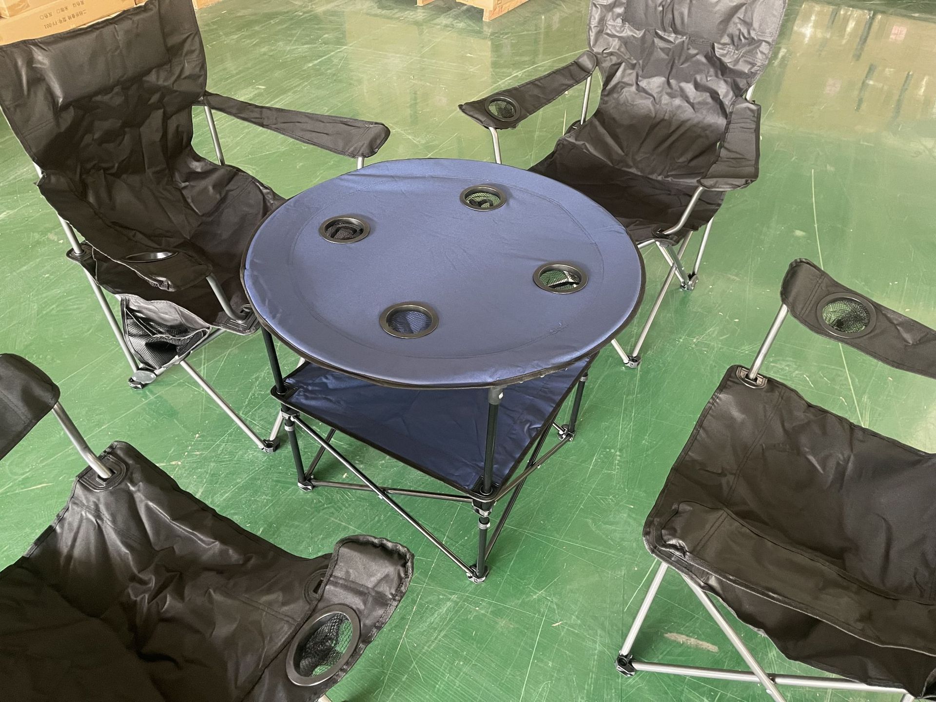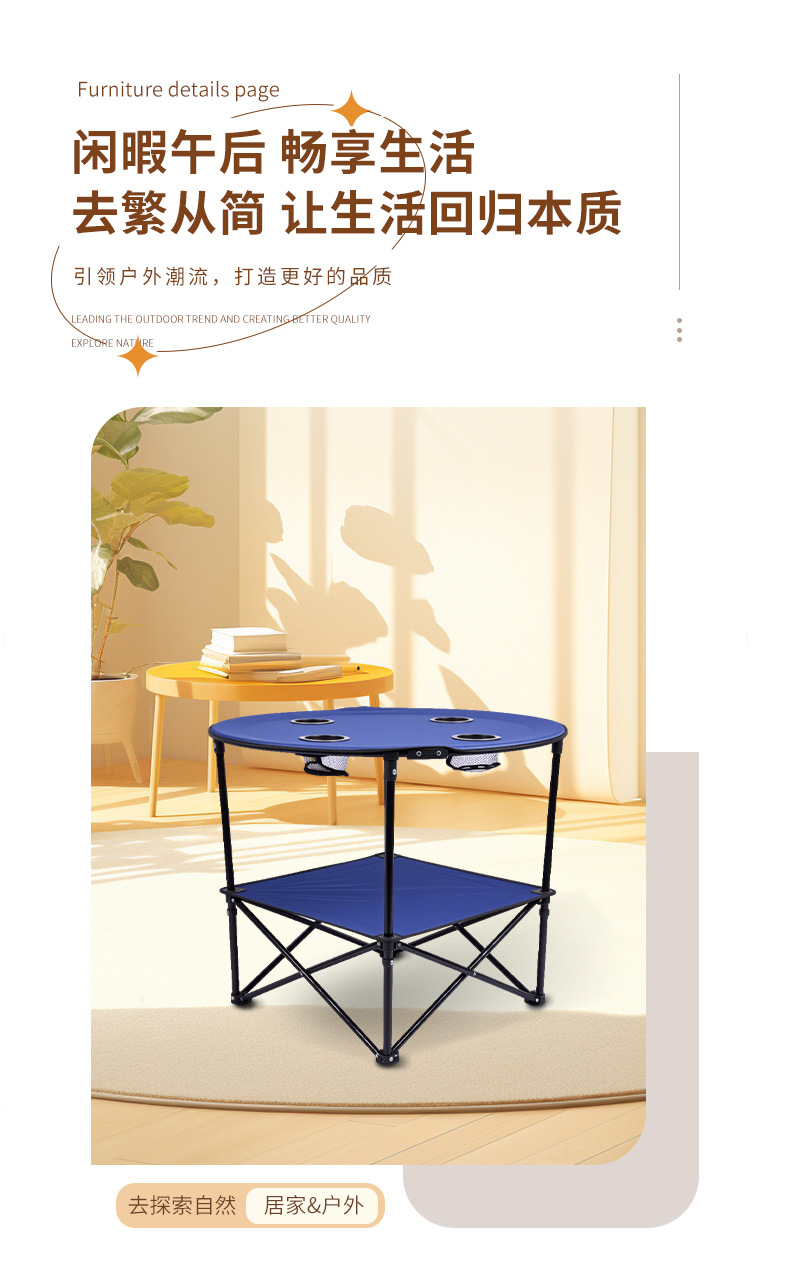 국경을 넘는 인기 야외 원형 접이식 테이블 피크닉 파티 캠핑 테이블 옥스포드 천 식탁 의자 제조업체 도매스토어 가기