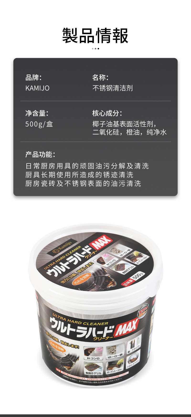 일본 카미조 스테인레스 스틸 청소 페이스트 오염 제거 페이스트 주방 냄비 바닥 녹 및 기름 제거 다기능 세척제
