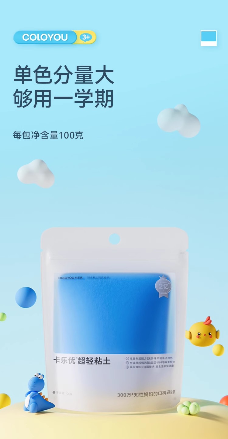 Kalyou 어린이용 초경량 점토 100g 대형 패키지 흰색 단색 플라스틱 수제 diy 컬러 점토 장난감스토어 가기