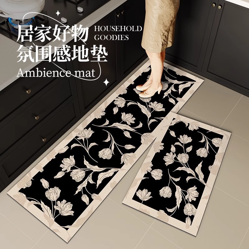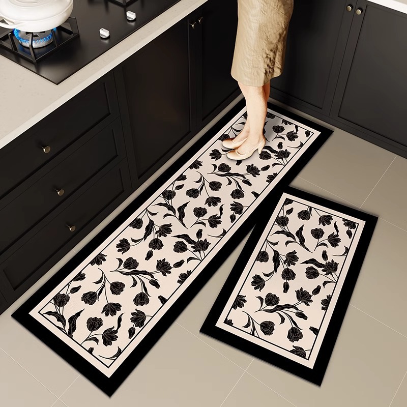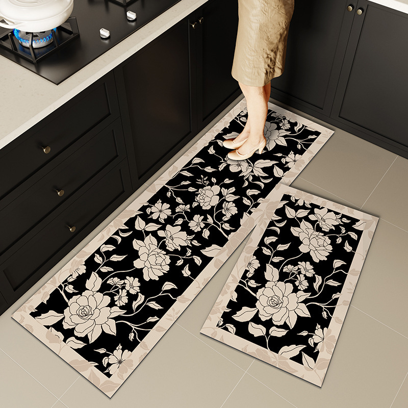 프랑스 복고풍 꽃 흑백 일반 주방 바닥 매트 규조토 진흙 흡수성 미끄럼 방지 욕실 문 매트 게스트 침실 유니버설스토어 가기