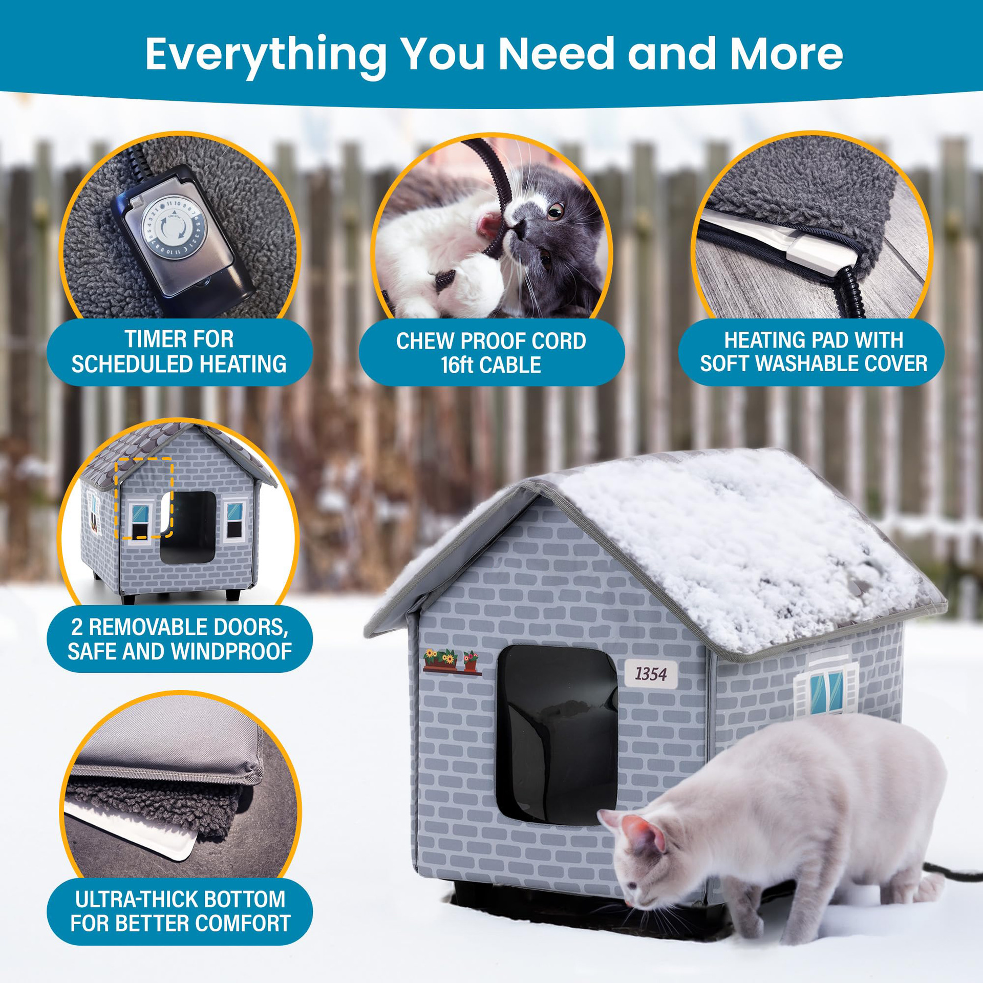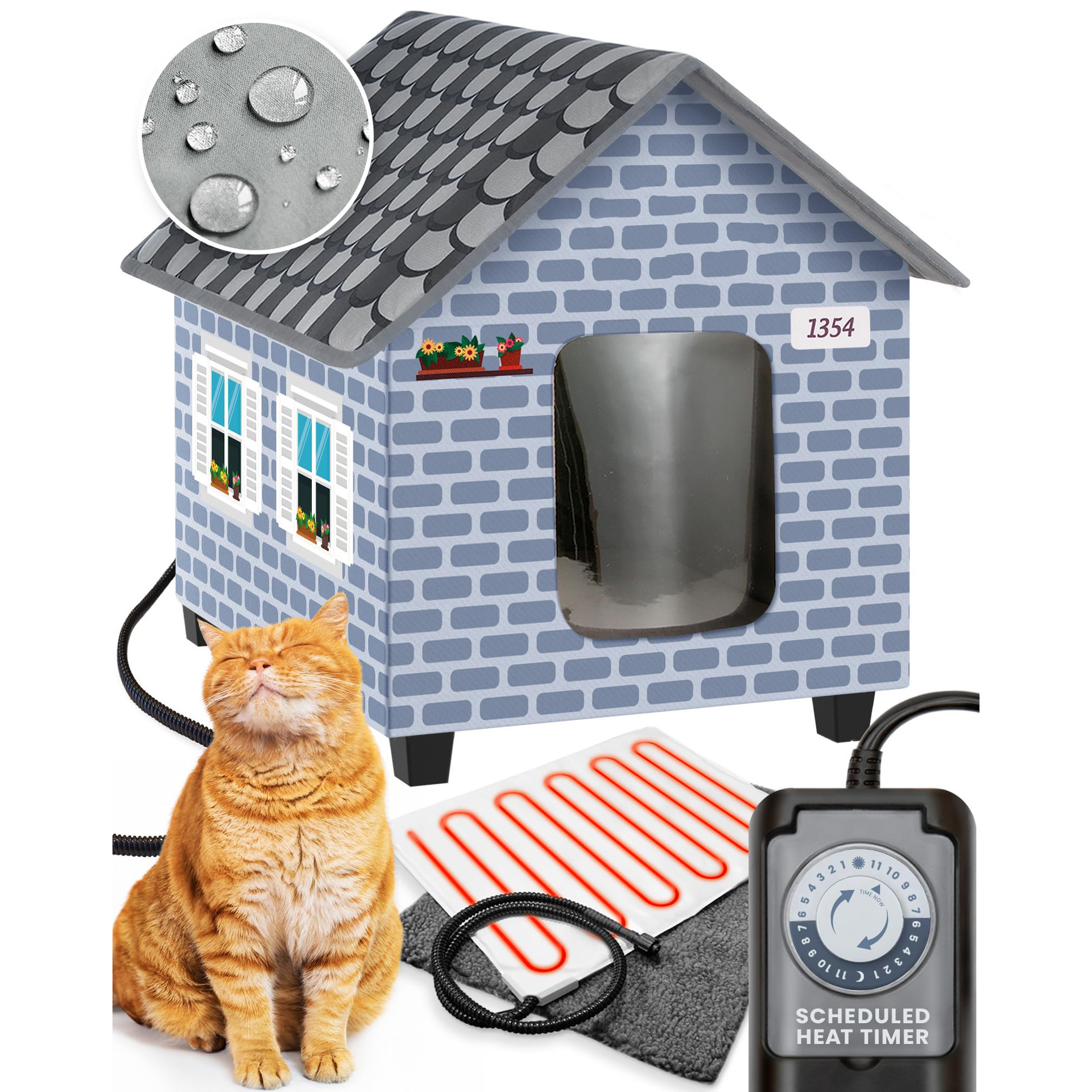 인쇄된 야외 고양이 둥지, 가열된 겨울 따뜻한 고양이 집, 사계절 방수, 방랑 고양이 둥지, 고양이 집스토어 가기