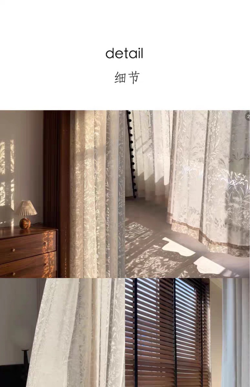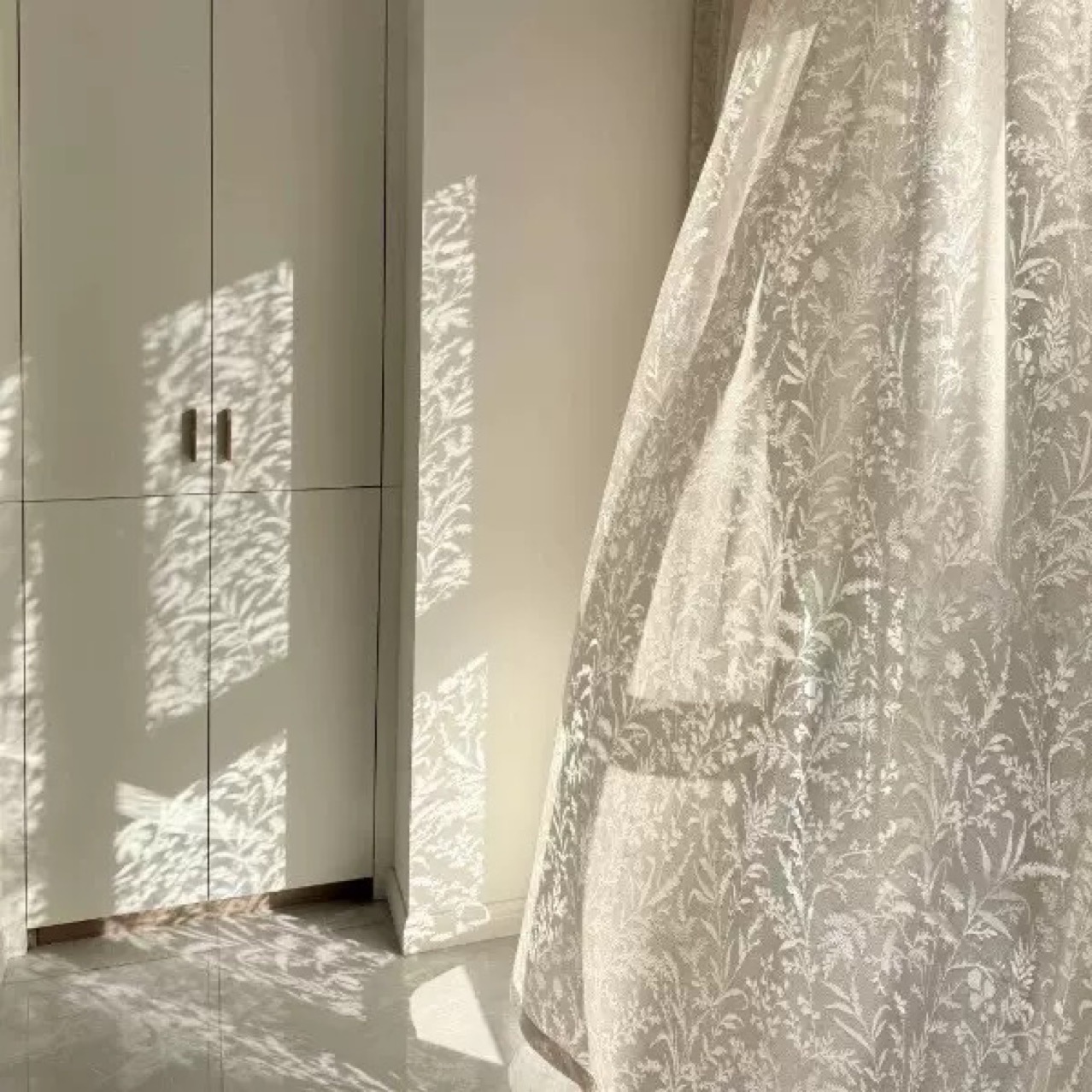 프렌치 크림 스타일의 달빛 가지 그림자, 심플하고 모던한 창문 스크린, 침실 발코니 베드벤치 창문을 위한 투광 불투명 커튼, 다용도 거즈 커튼스토어 가기