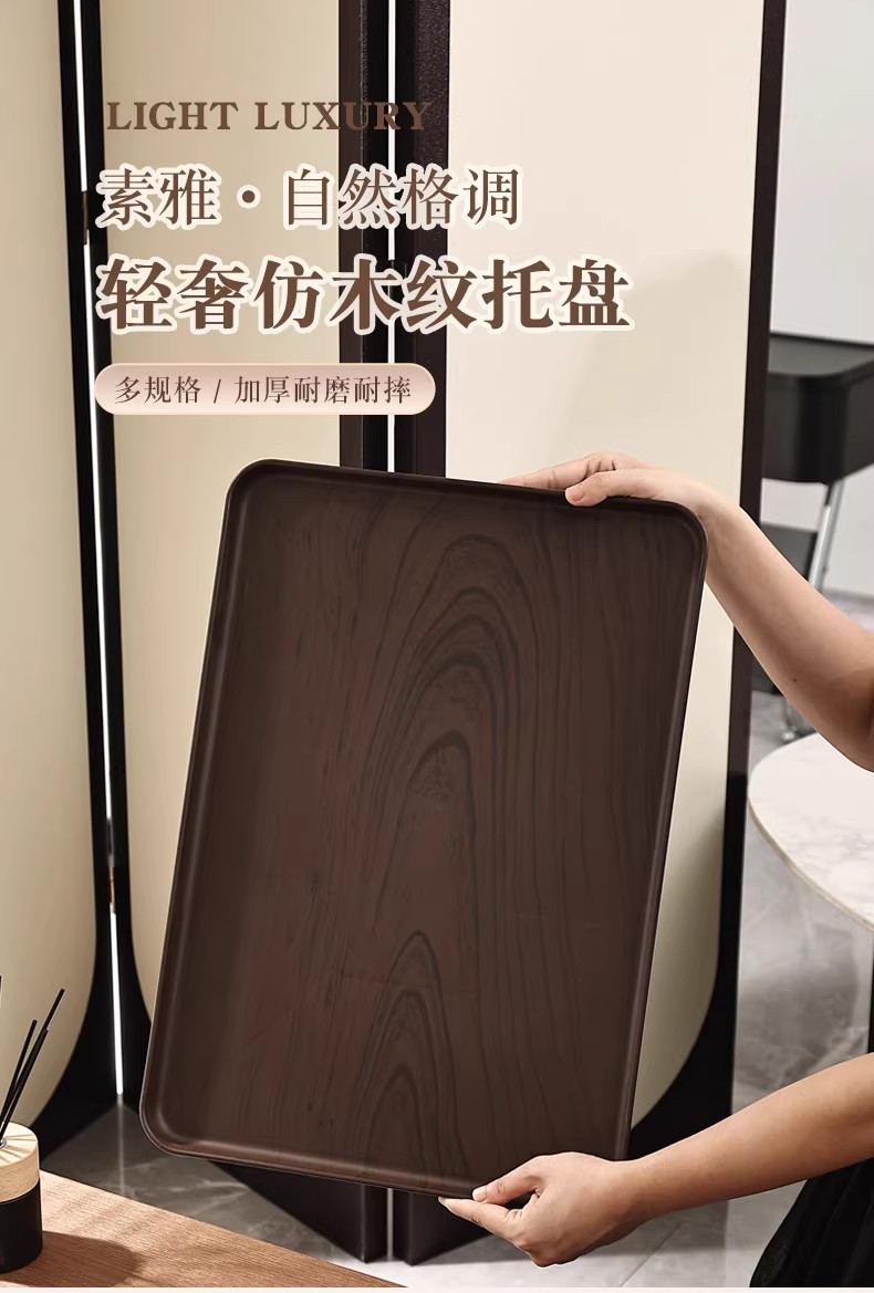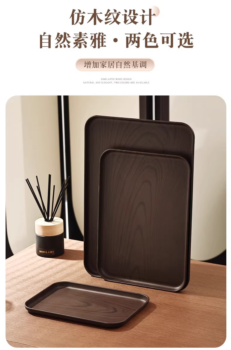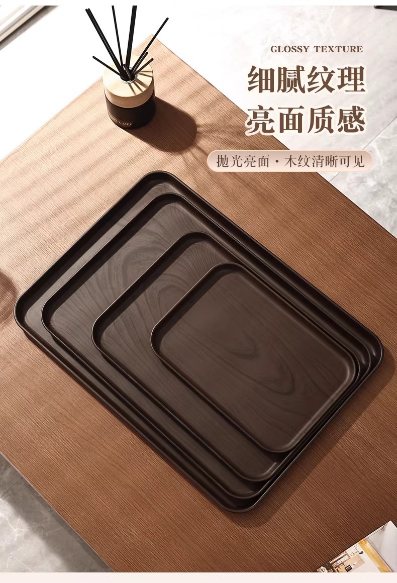 크리 에이 티브 모조 나뭇결 호두 가정용 플라스틱 트레이 직사각형 차 트레이 상업용 호텔 워터 컵 주전자 보관함스토어 가기